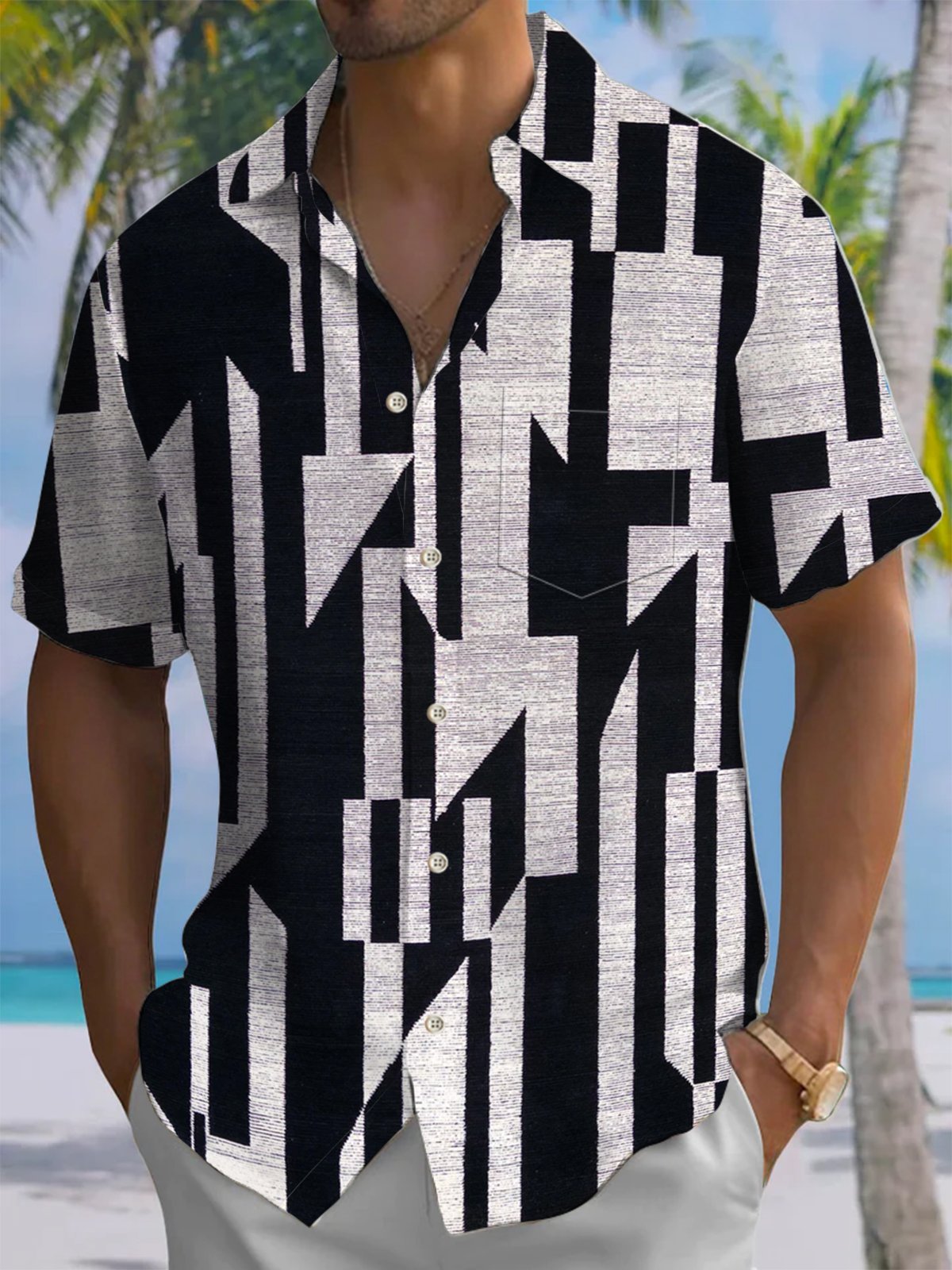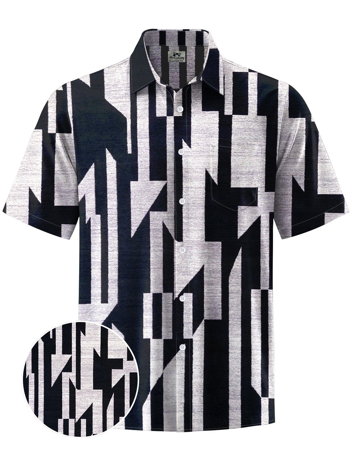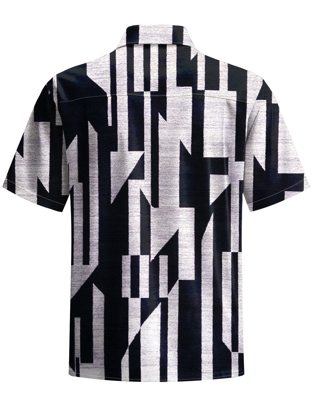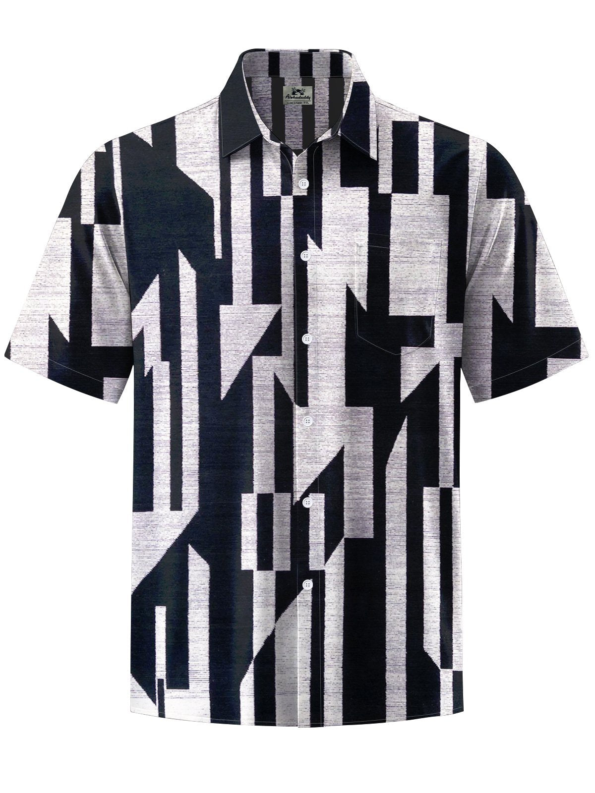 Alohadaddy® Casual Geometric Art Print Chest Pocket Men's Short Sleeve Shirt Big & Tall