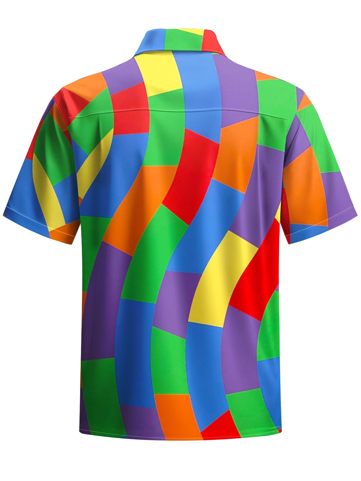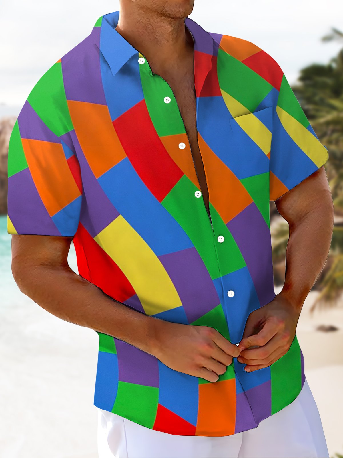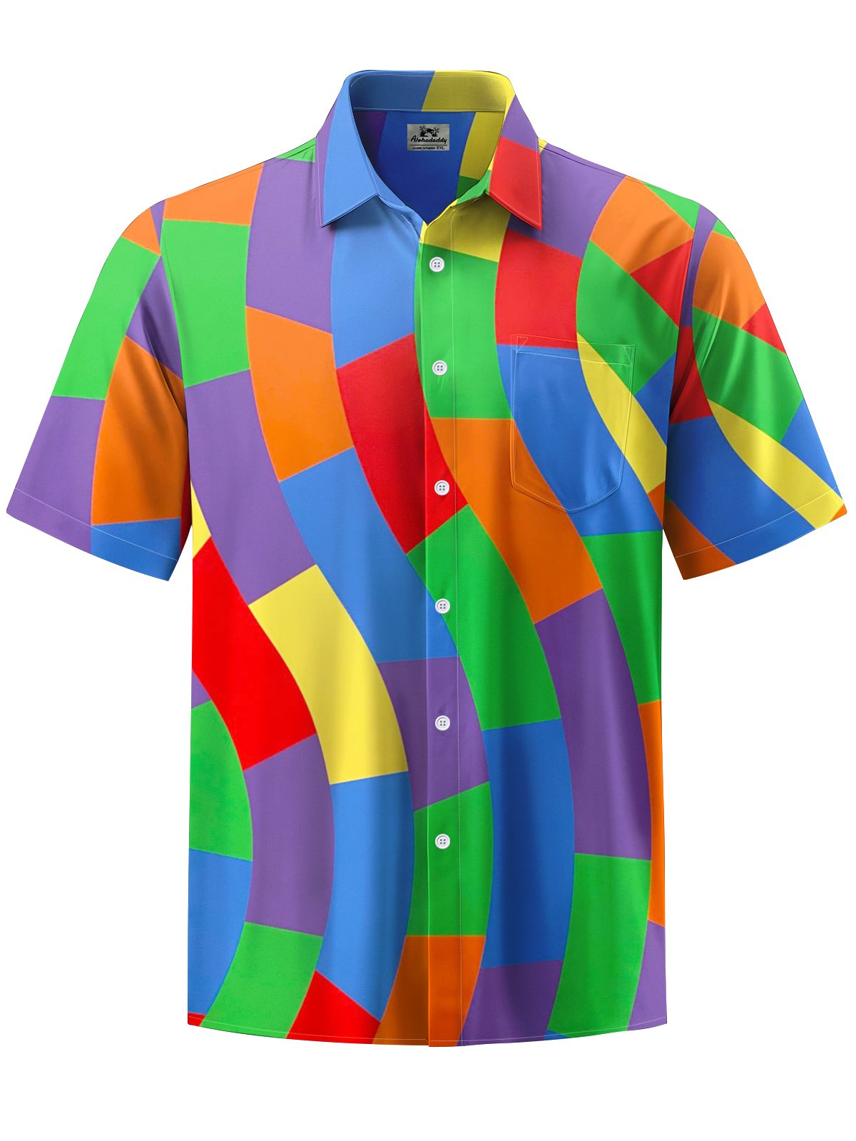 Alohadaddy® Casual Geometric Art Print Men's Short Sleeve Stretch Shirt Big & Tall