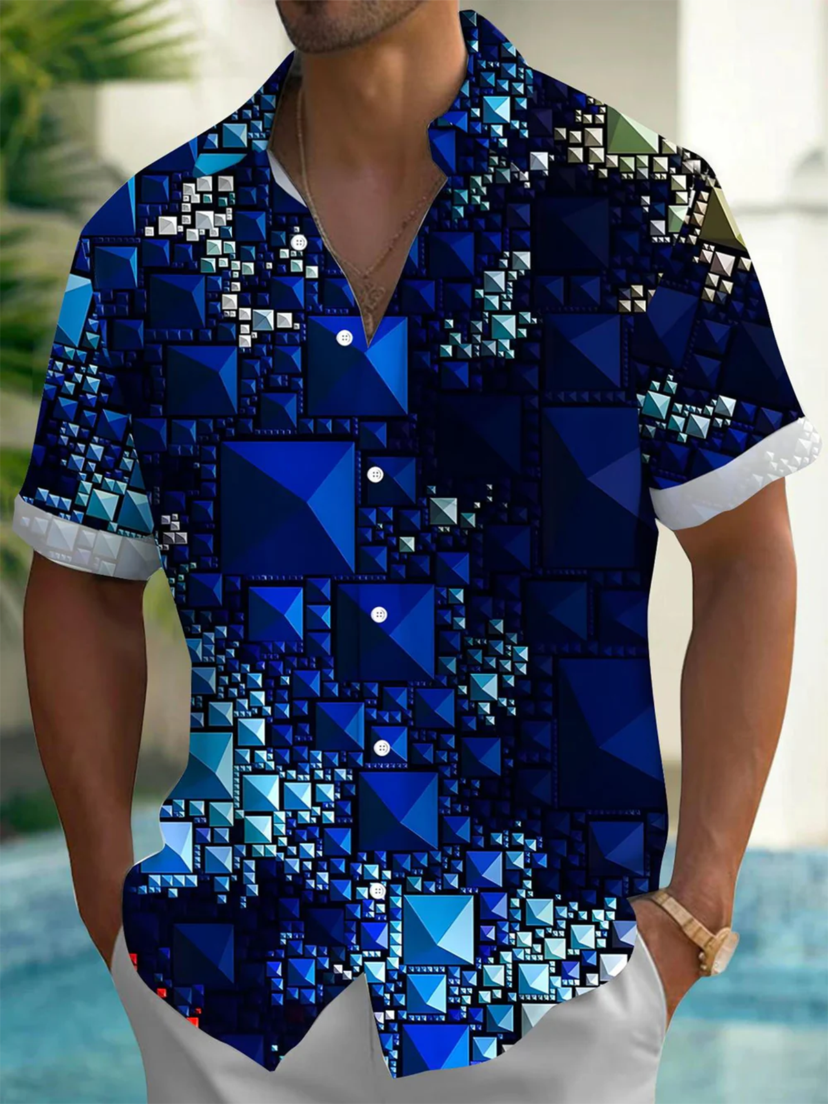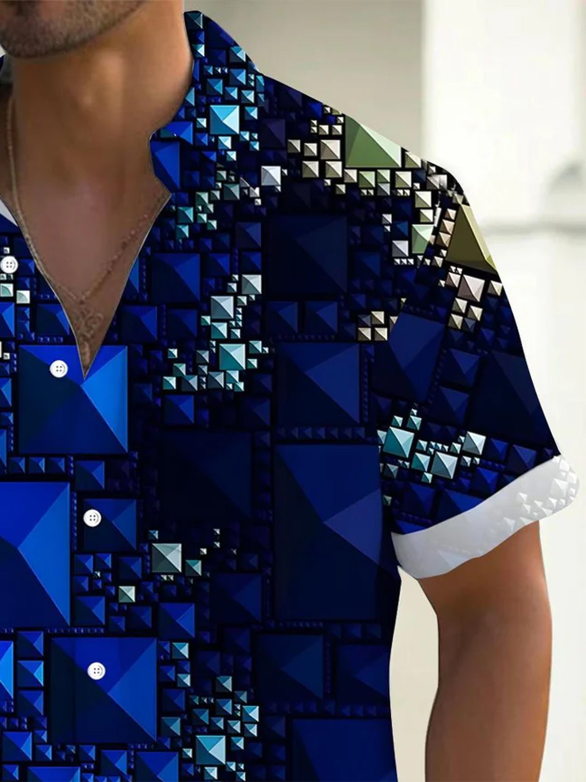 Alohadaddy® Casual Geometric Art Print Moisture Wicking Men's Short Sleeve Shirt Big & Tall