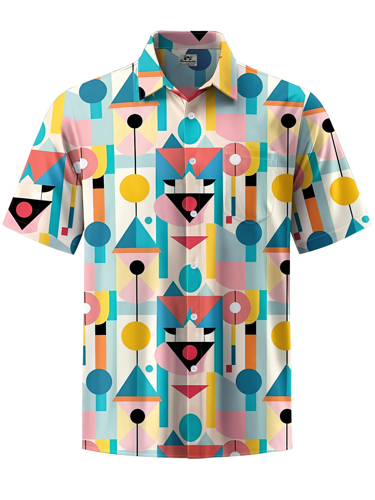 Alohadaddy® Casual Geometric Art Print Pocket Stretch Men's Short Sleeve Shirt Big & Tall