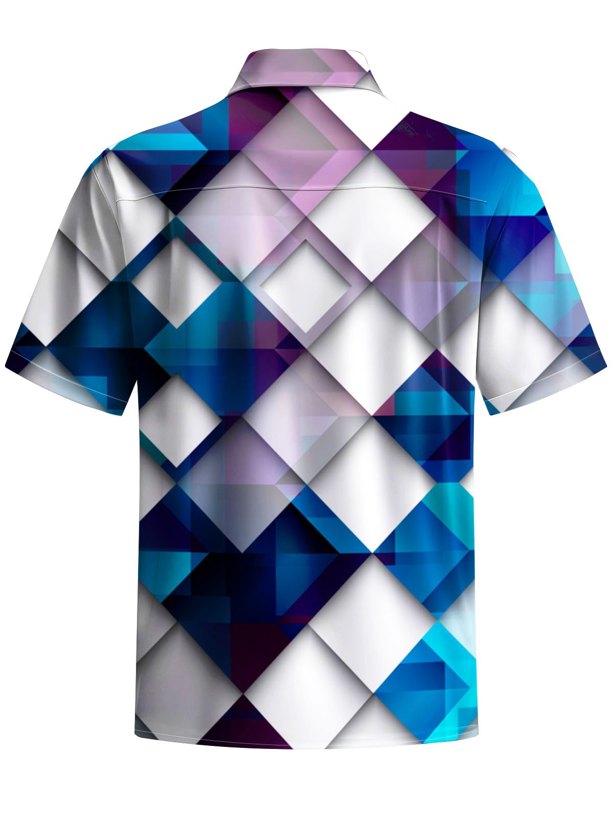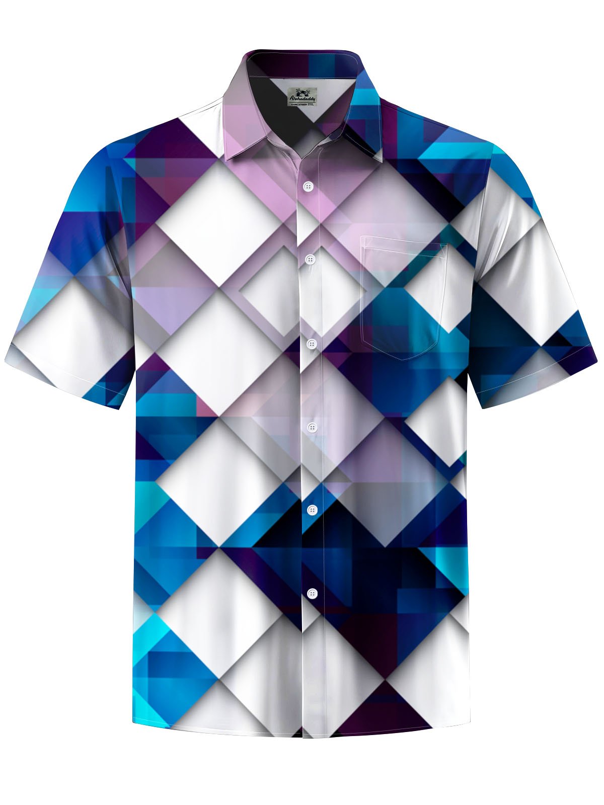 Alohadaddy® Casual Geometric Art Print Stretch Pocket Men's Short Sleeve Shirt Big & Tall