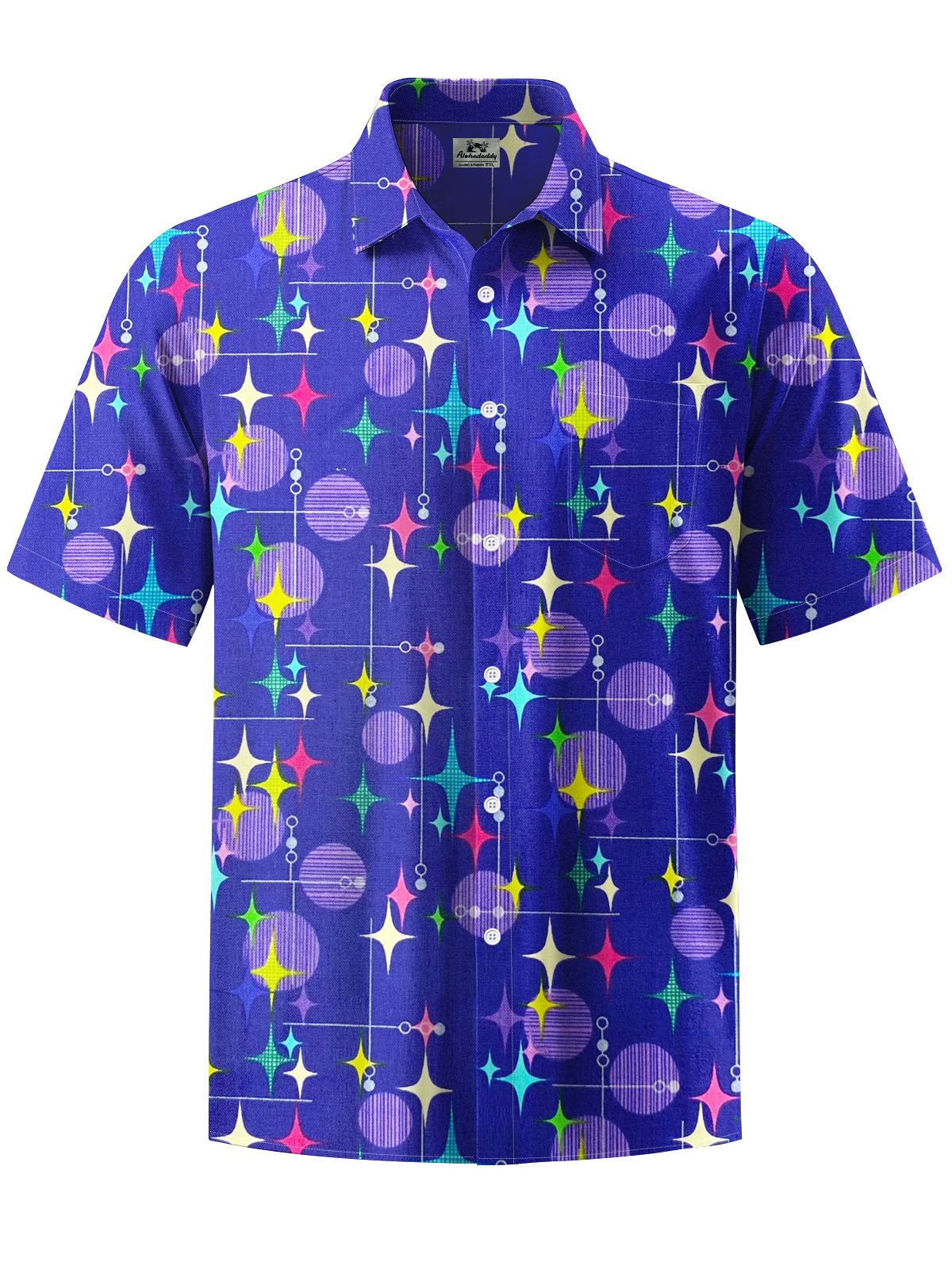Alohadaddy® Casual Geometric Art Print Stretch Pocket Men's Short Sleeve Shirt Big & Tall