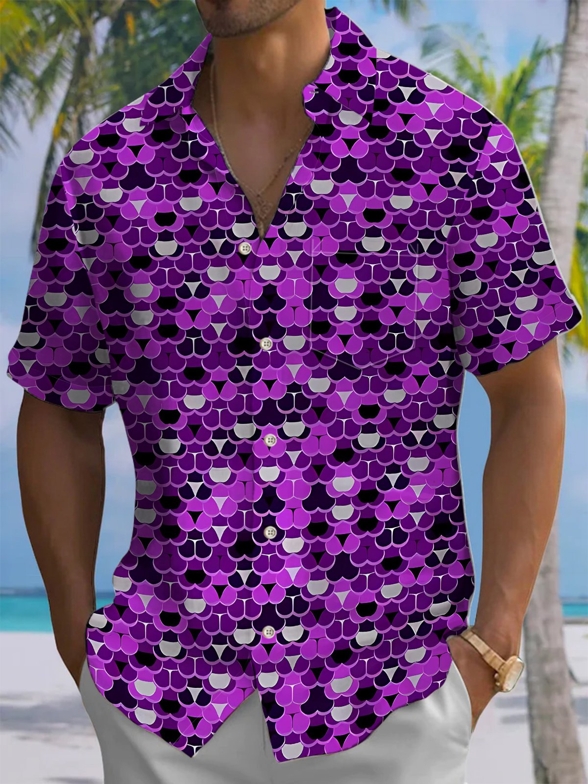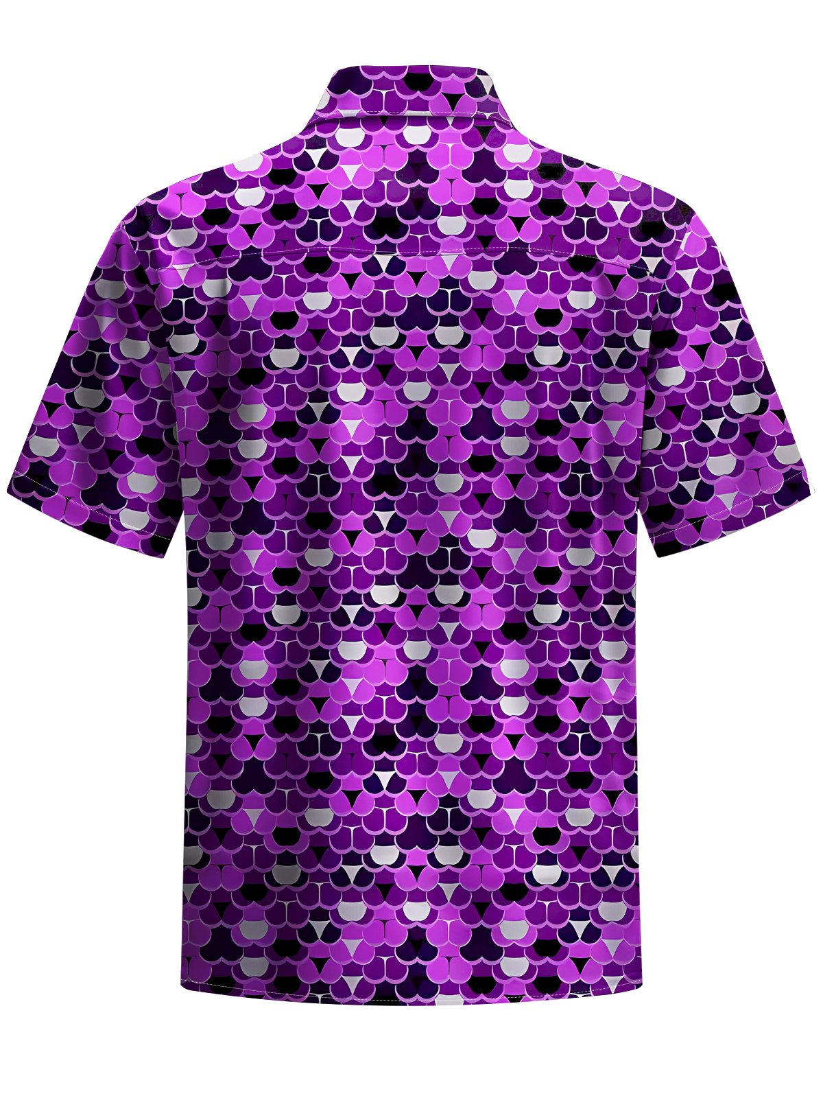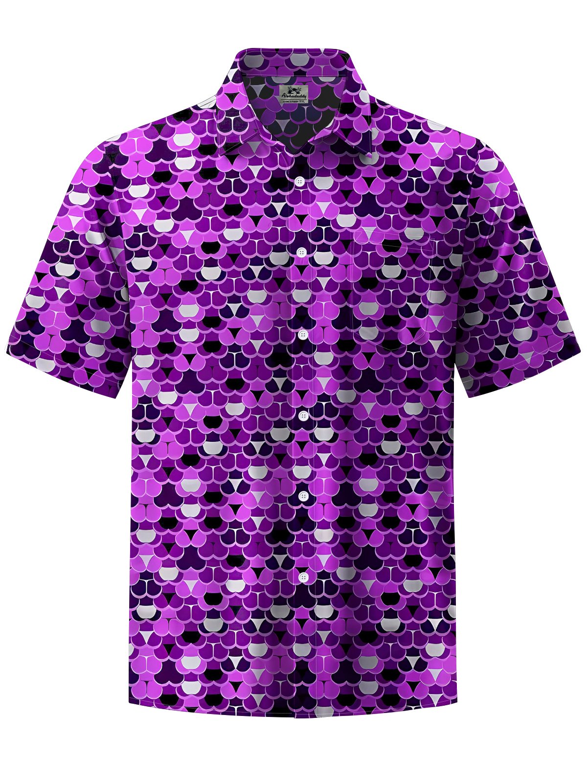 Alohadaddy® Casual Geometric Golf Art Print Chest Pocket Men's Short Sleeve Shirt Big & Tall