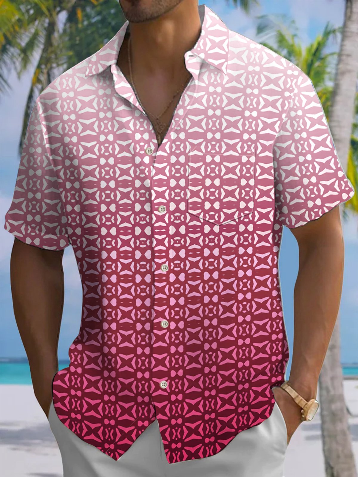 Alohadaddy® Casual Geometric Gradient Art Print Chest Pocket Men's Short Sleeve Shirt Big & Tall
