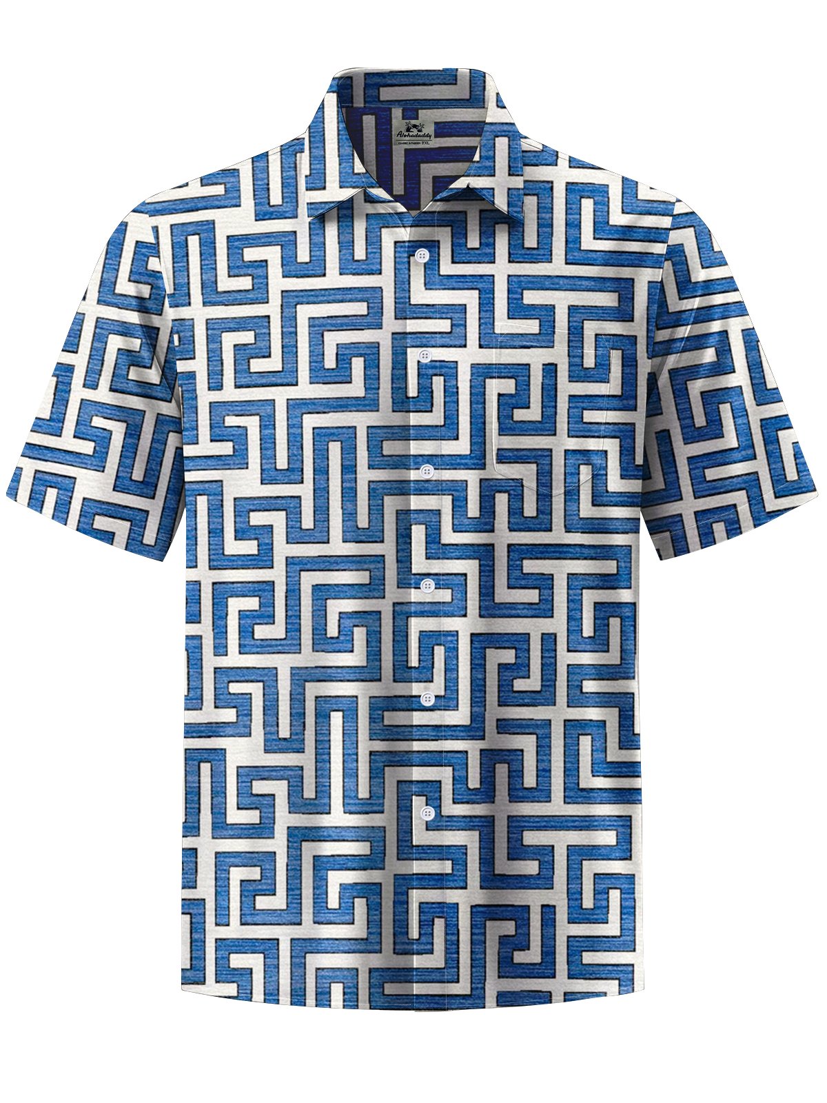 Alohadaddy® Casual Geometric Pattern Art Print Chest Pocket Men's Short Sleeve Shirt Big & Tall