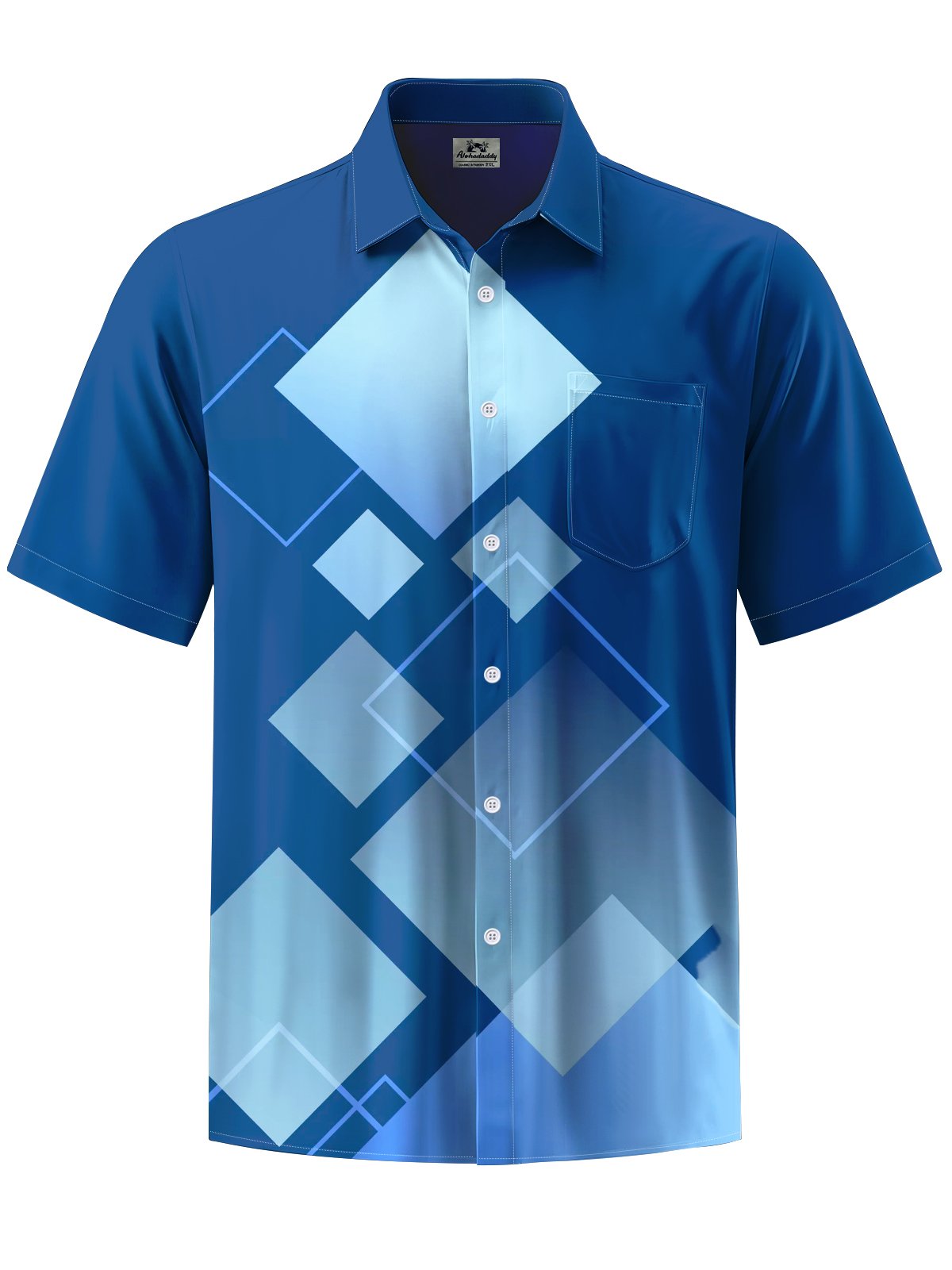 Alohadaddy® Casual Geometric Print Art Stretch Pocket Men's Short Sleeve Shirt Big & Tall