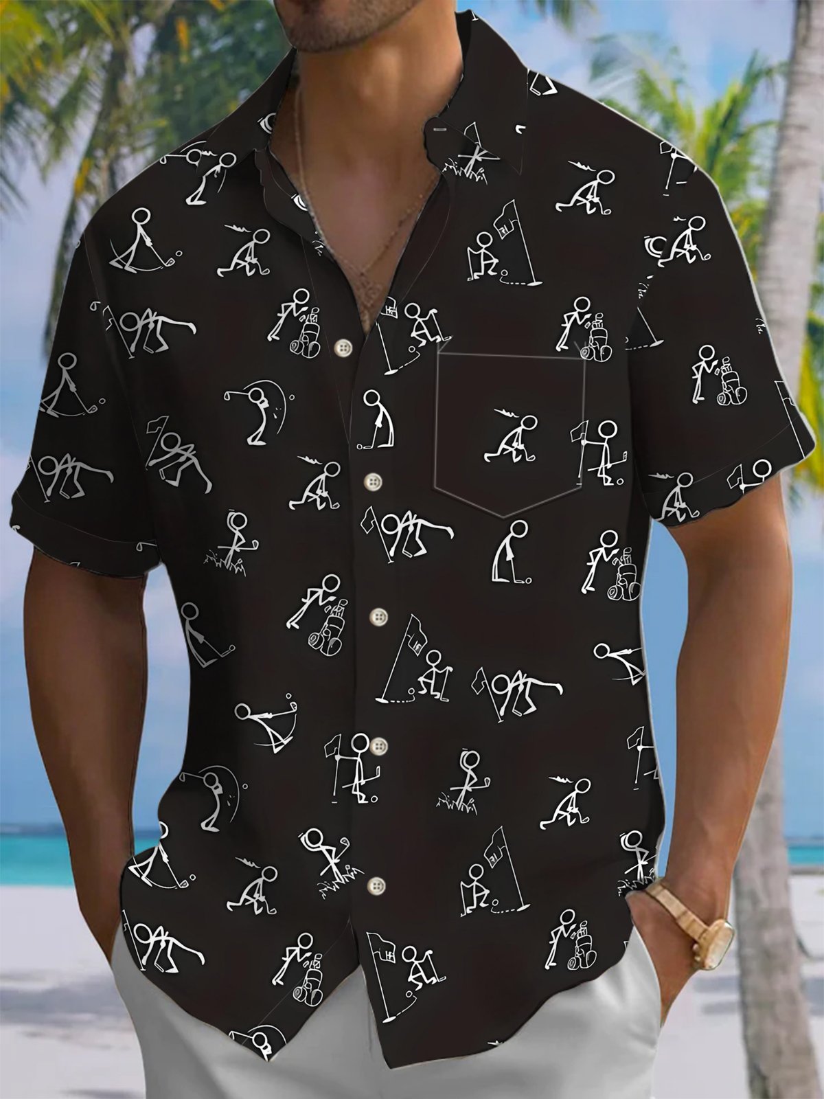 Alohadaddy® Casual Golf Art Print Chest Pocket Men's Short Sleeve Shirts Big & Tall