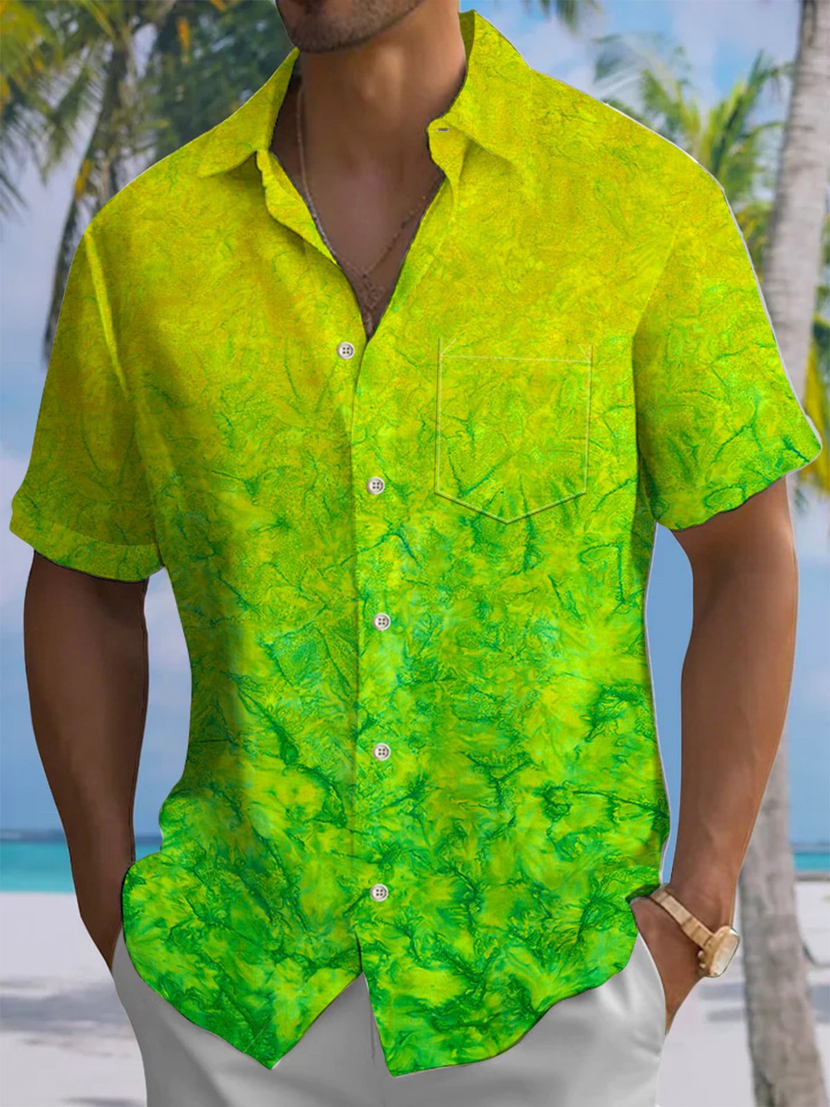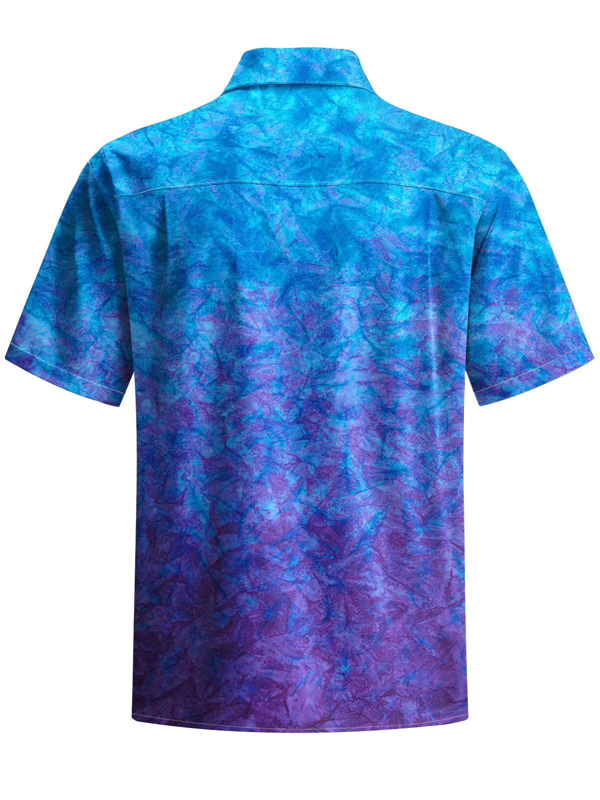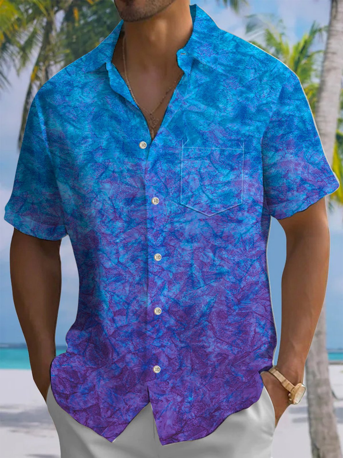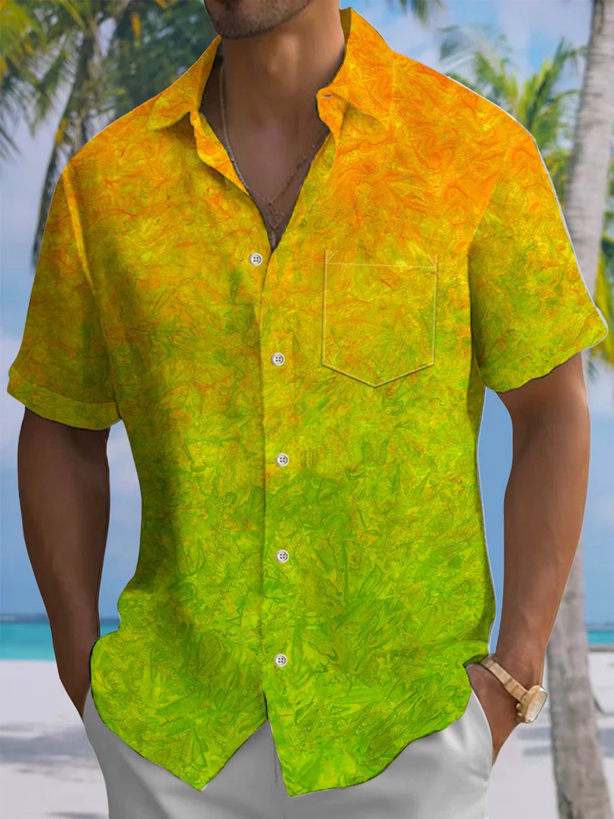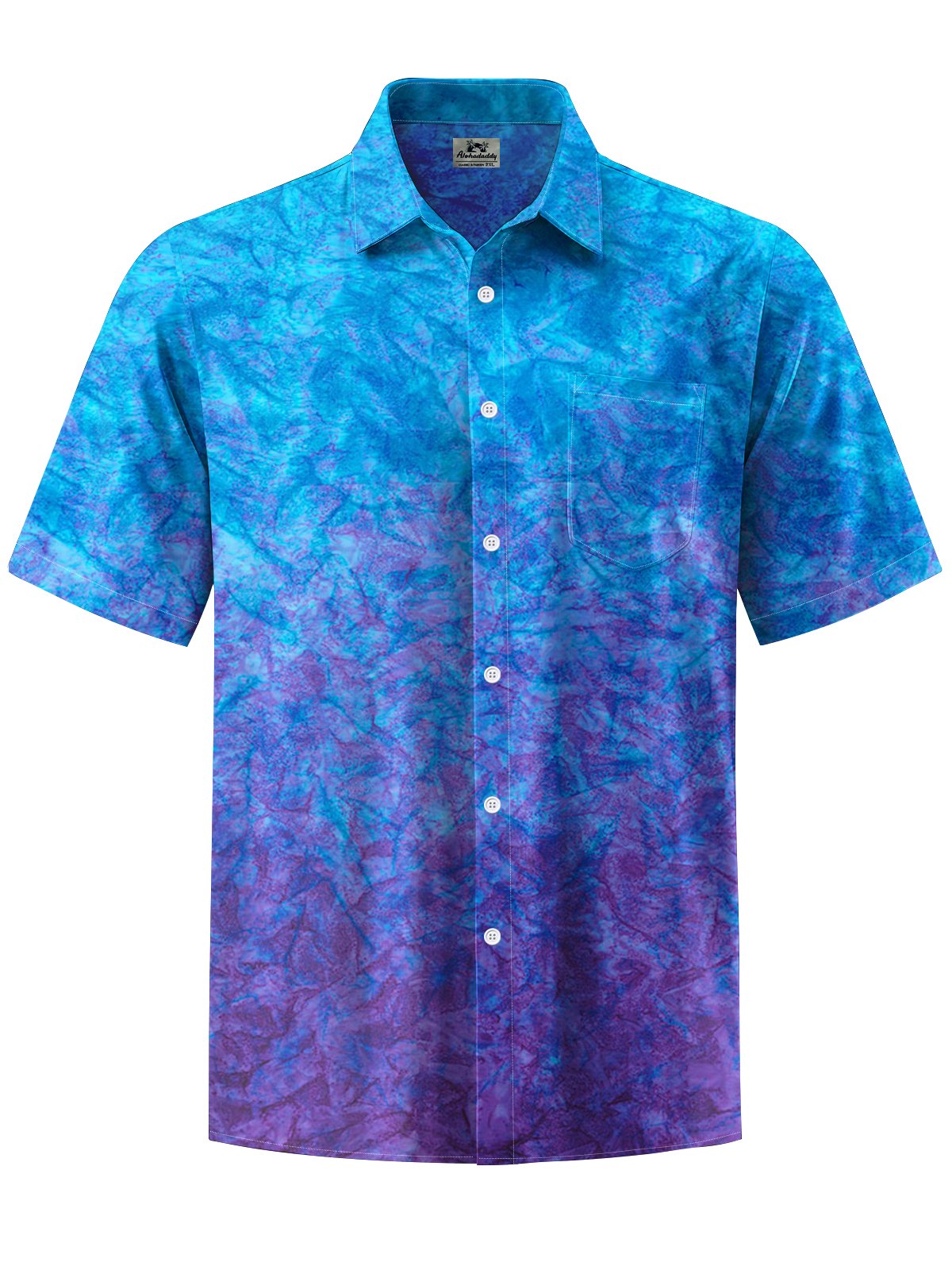 Alohadaddy® Casual Gradient Abstract Print Art Chest Pocket Men Short Sleeve Shirt Big & Tall