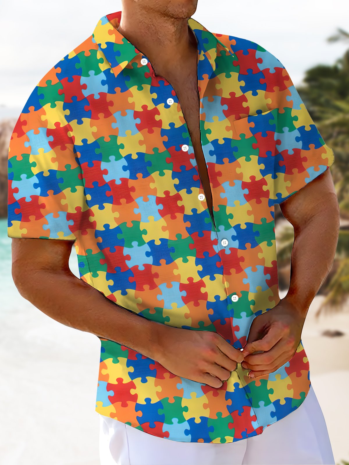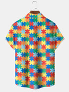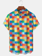 Alohadaddy® Casual Jigsaw Geometric Print Art Pocket Stretch Men's Short Sleeve Shirt Big & Tall