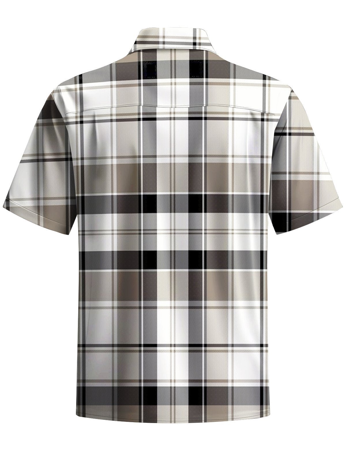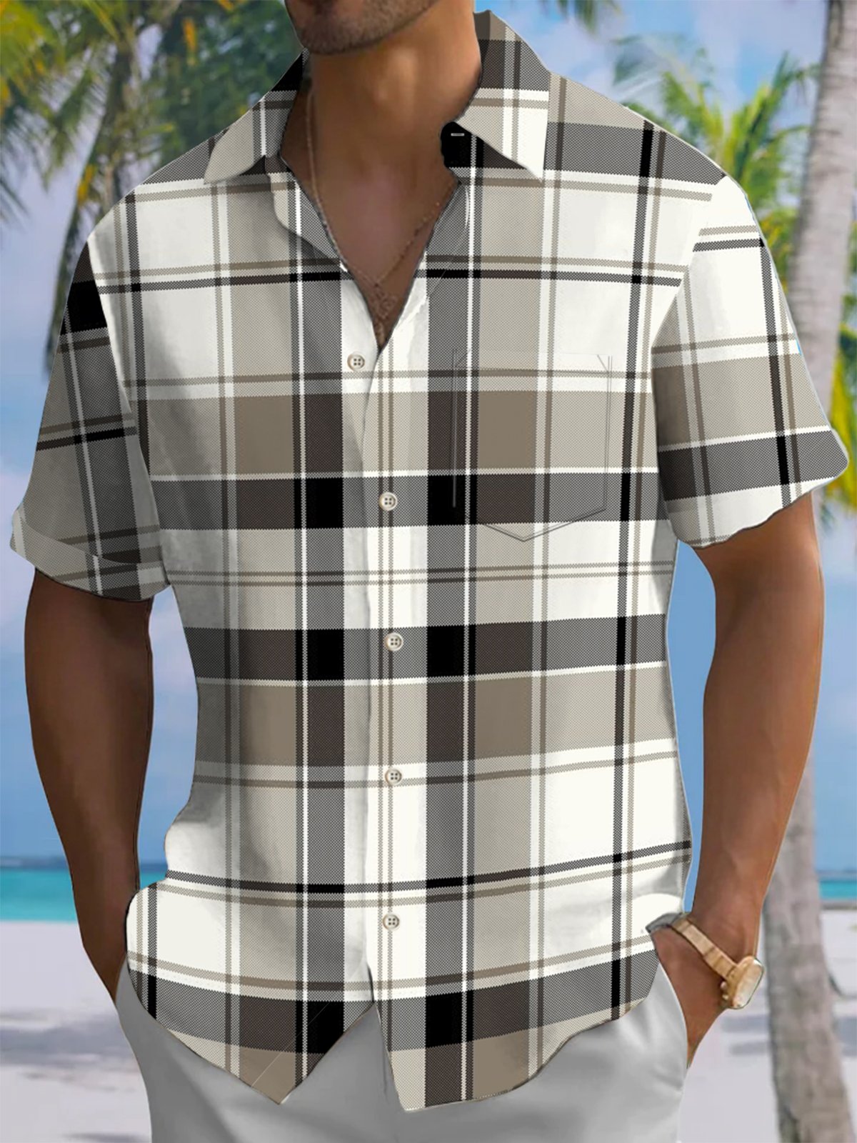 Alohadaddy® Casual Plaid Art Print Chest Pocket Men's Short Sleeve Shirt Big & Tall