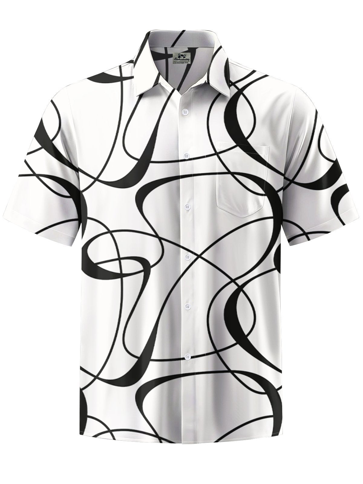 Alohadaddy® Casual Stripe Abstract Print Art Pocket Stretch Men's Short Sleeve Shirt Big & Tall