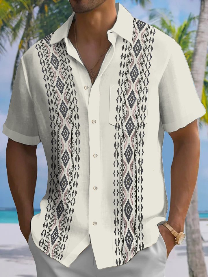 Alohadaddy® Casual Stripe Art Print Chest Pocket Men's Short Sleeve Shirt Big & Tall