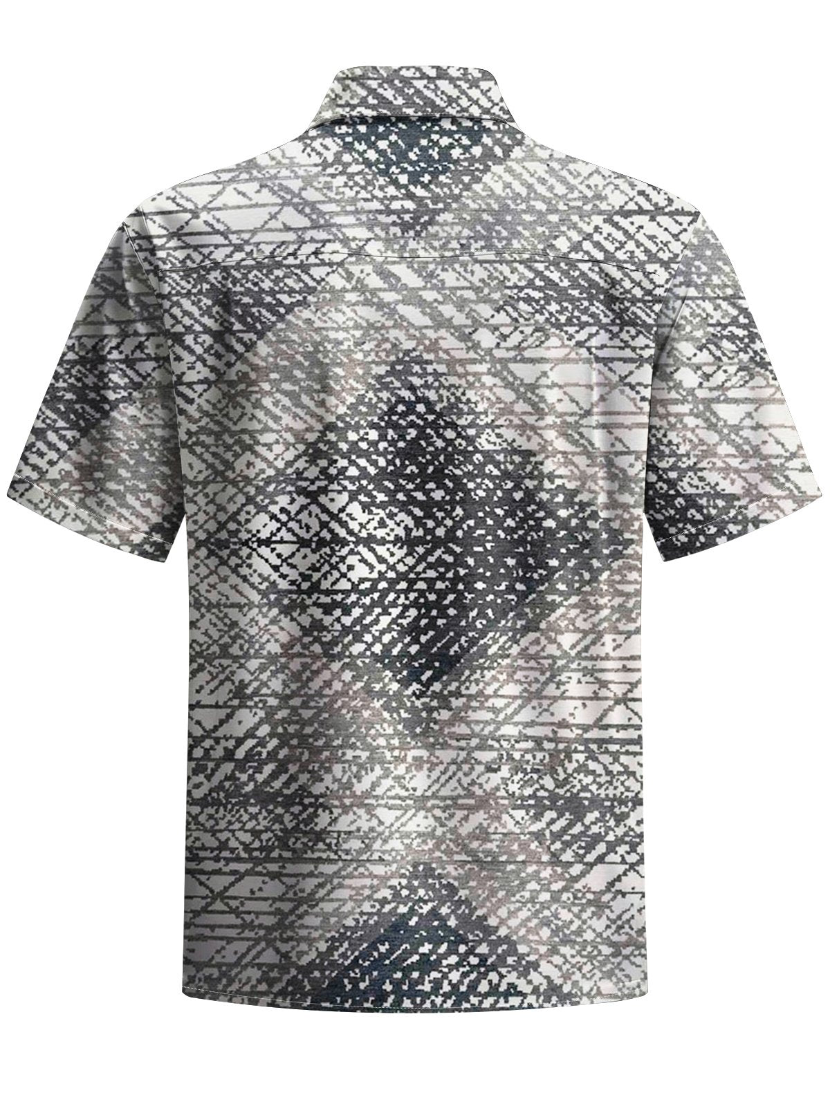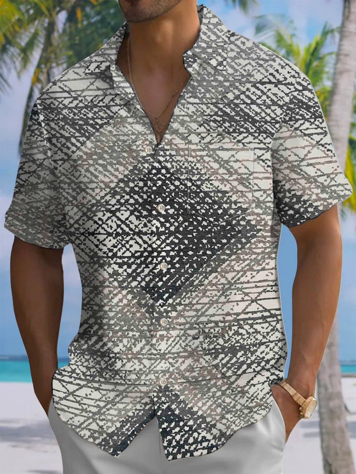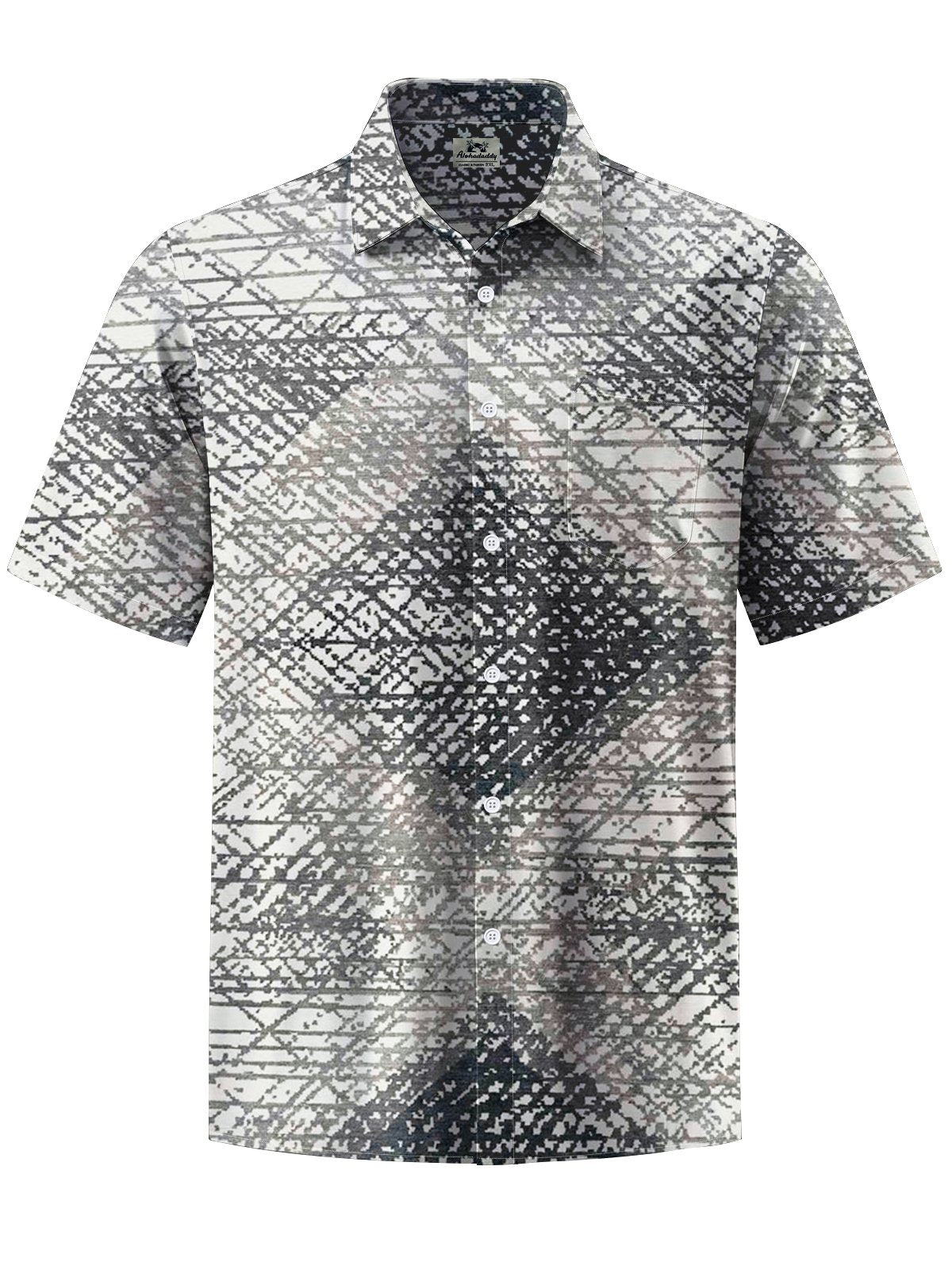 Alohadaddy® Casual Stripe Plaid Print Art Chest Pocket Men's Short Sleeve Shirt Big & Tall