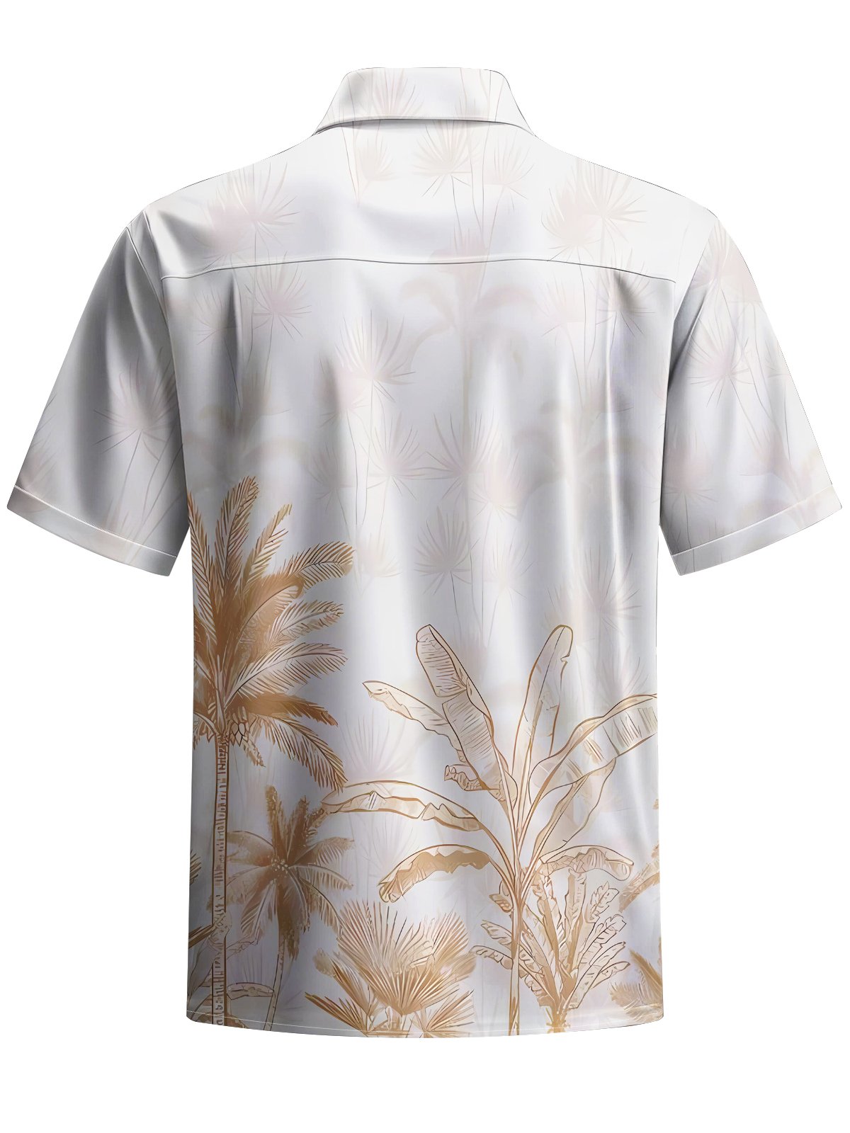 Alohadaddy® Hawaiian Palm Tree Print Stretch Pocket Button Men's Short Sleeve Shirt Big & Tall