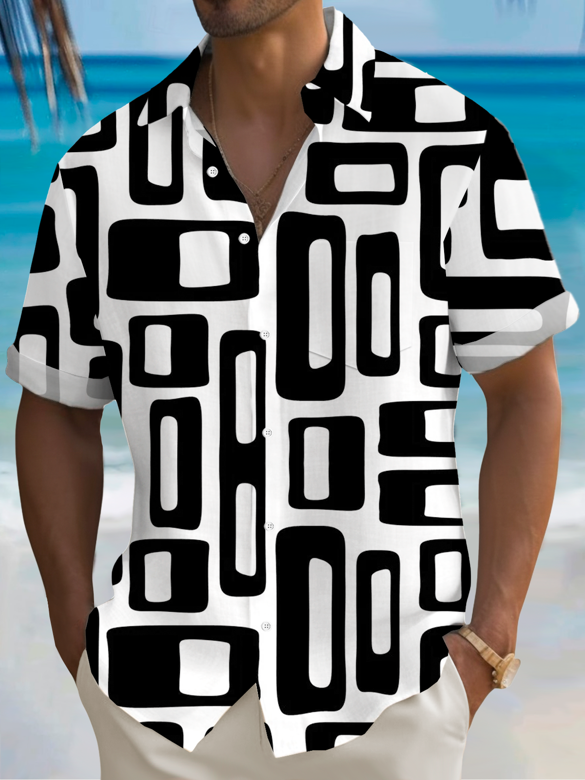 Alohadaddy® Retro 1950s Mid-century Atomic Age Geometric Graphic Print Men's Button Pocket Short Sleeve Shirt Big & Tall