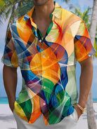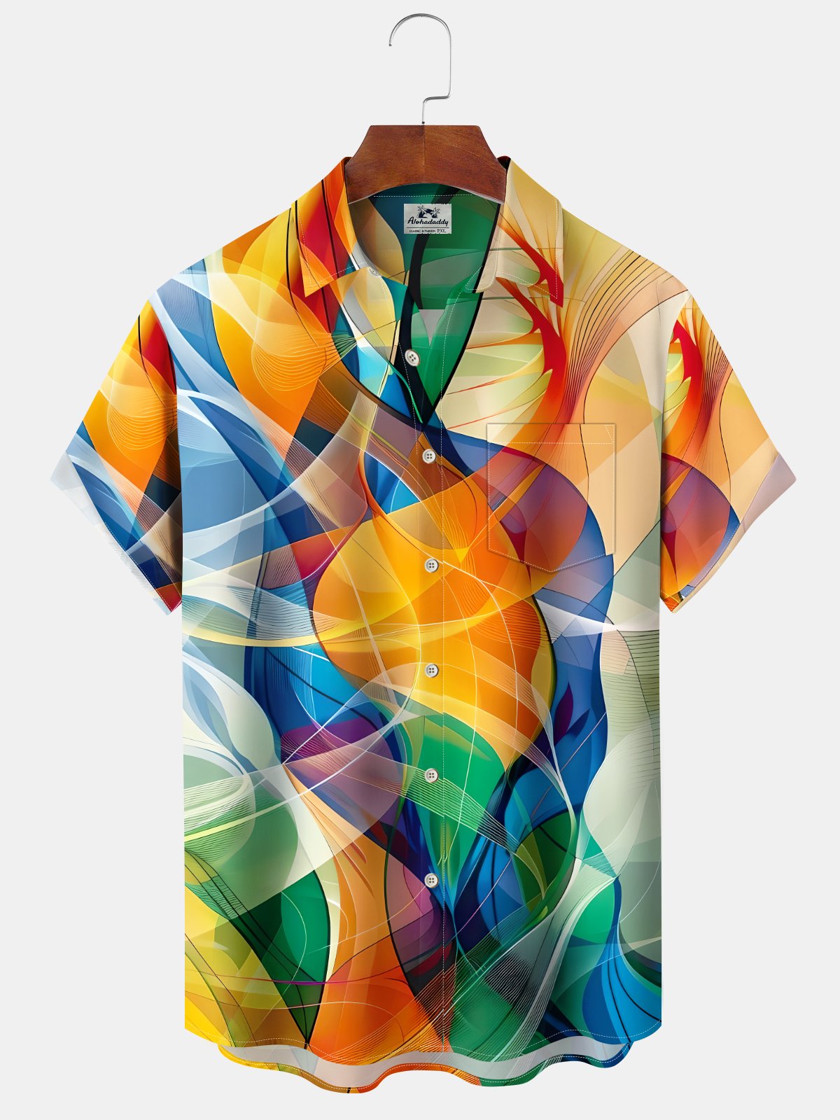 Alohadaddy® Retro Abstract Art Print Chest Pocket Stretch Moisture Wicking Large Size Hawaiian Shirt