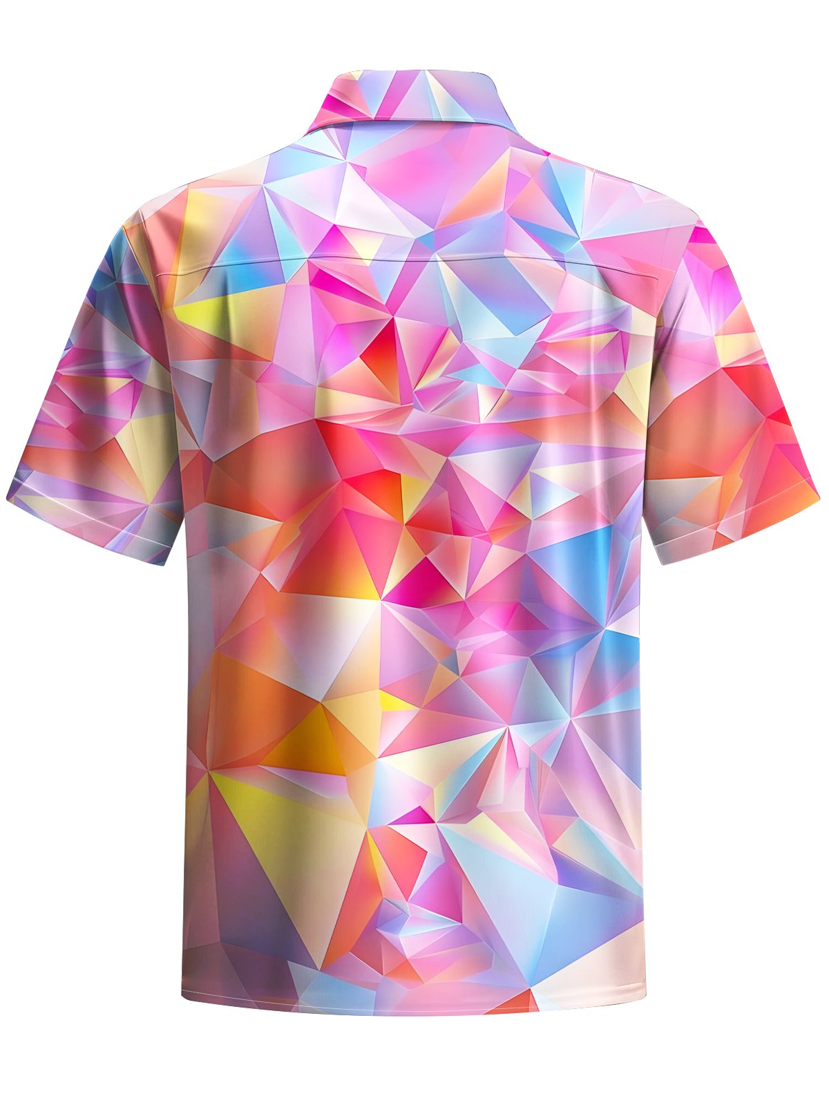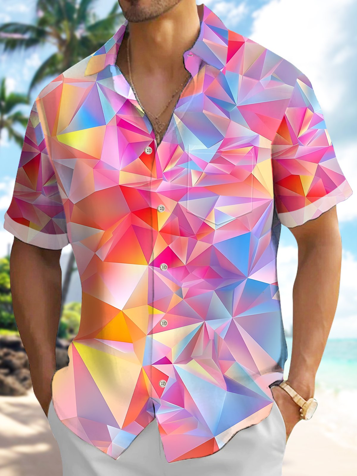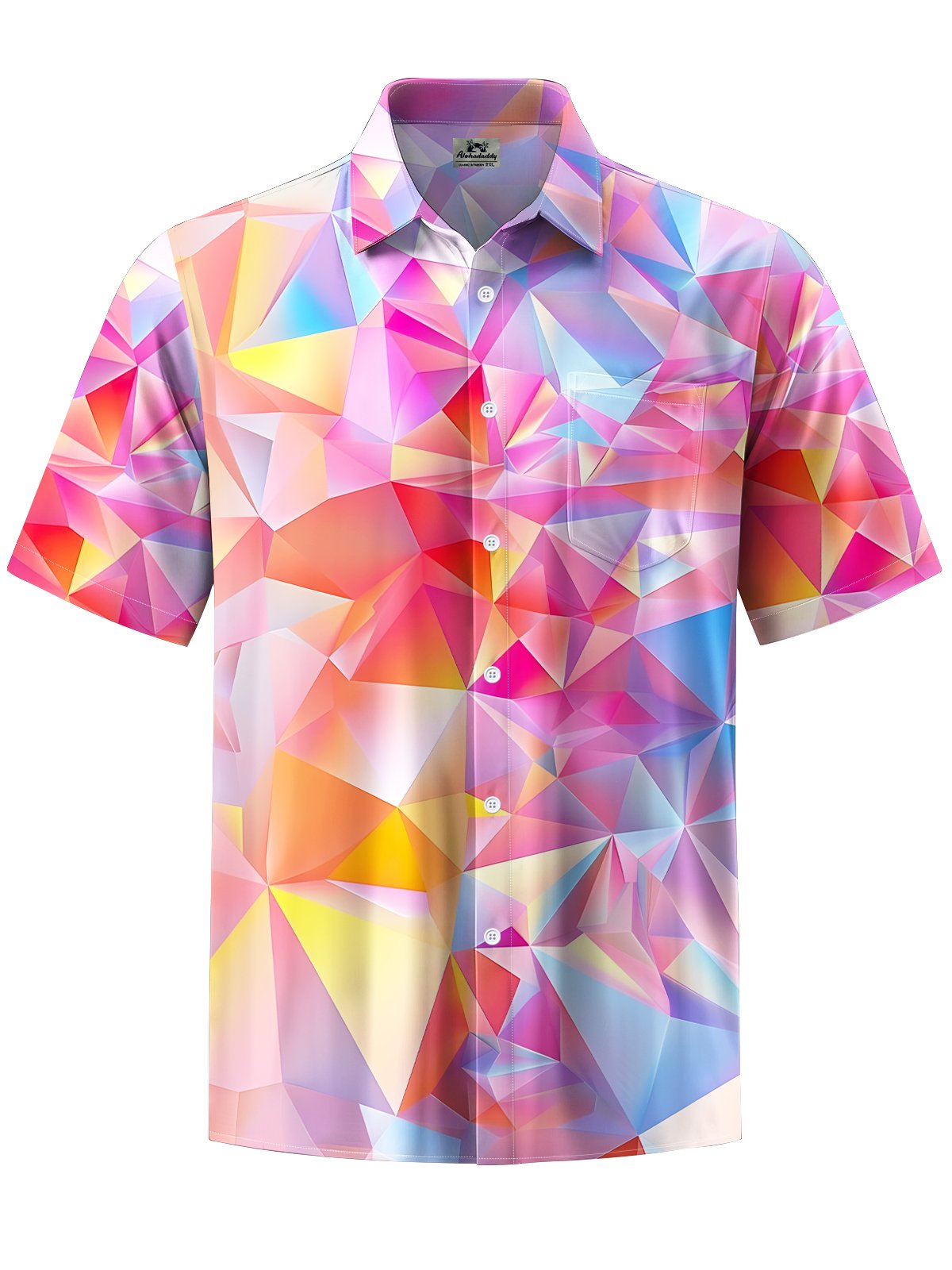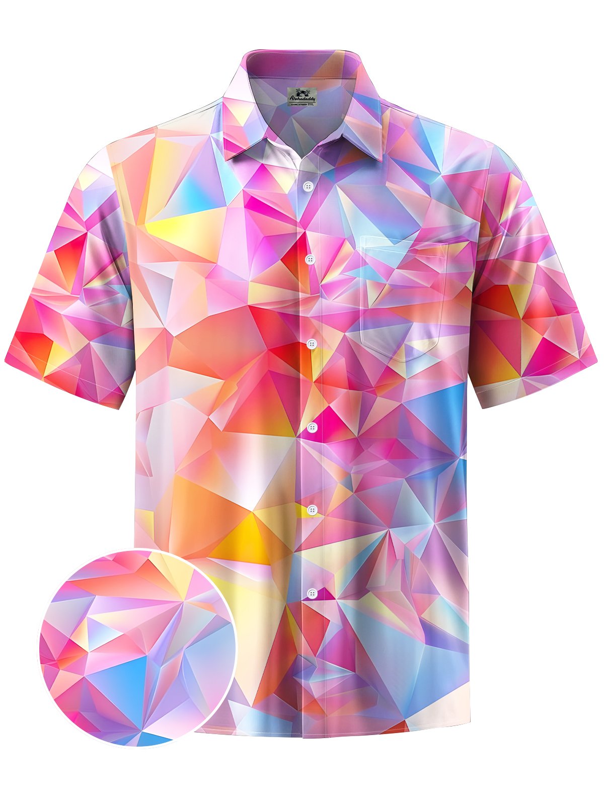 Alohadaddy® Retro Abstract Gradient Geometric Print Men's Pocket Shirt