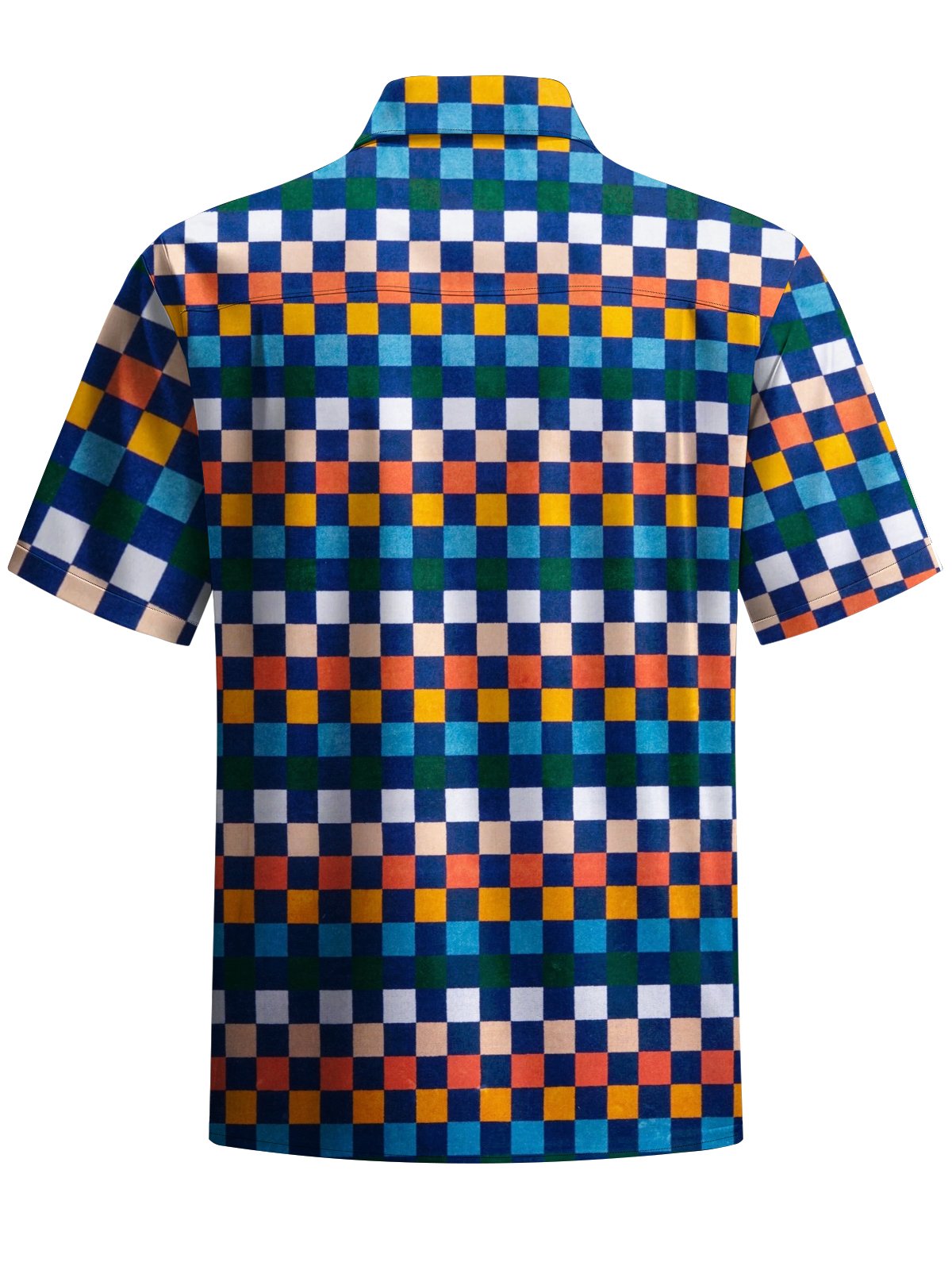 Alohadaddy® Retro Geometric Print Stretch Pocket Button Men's Short Sleeve Shirt Big & Tall