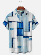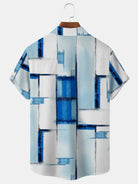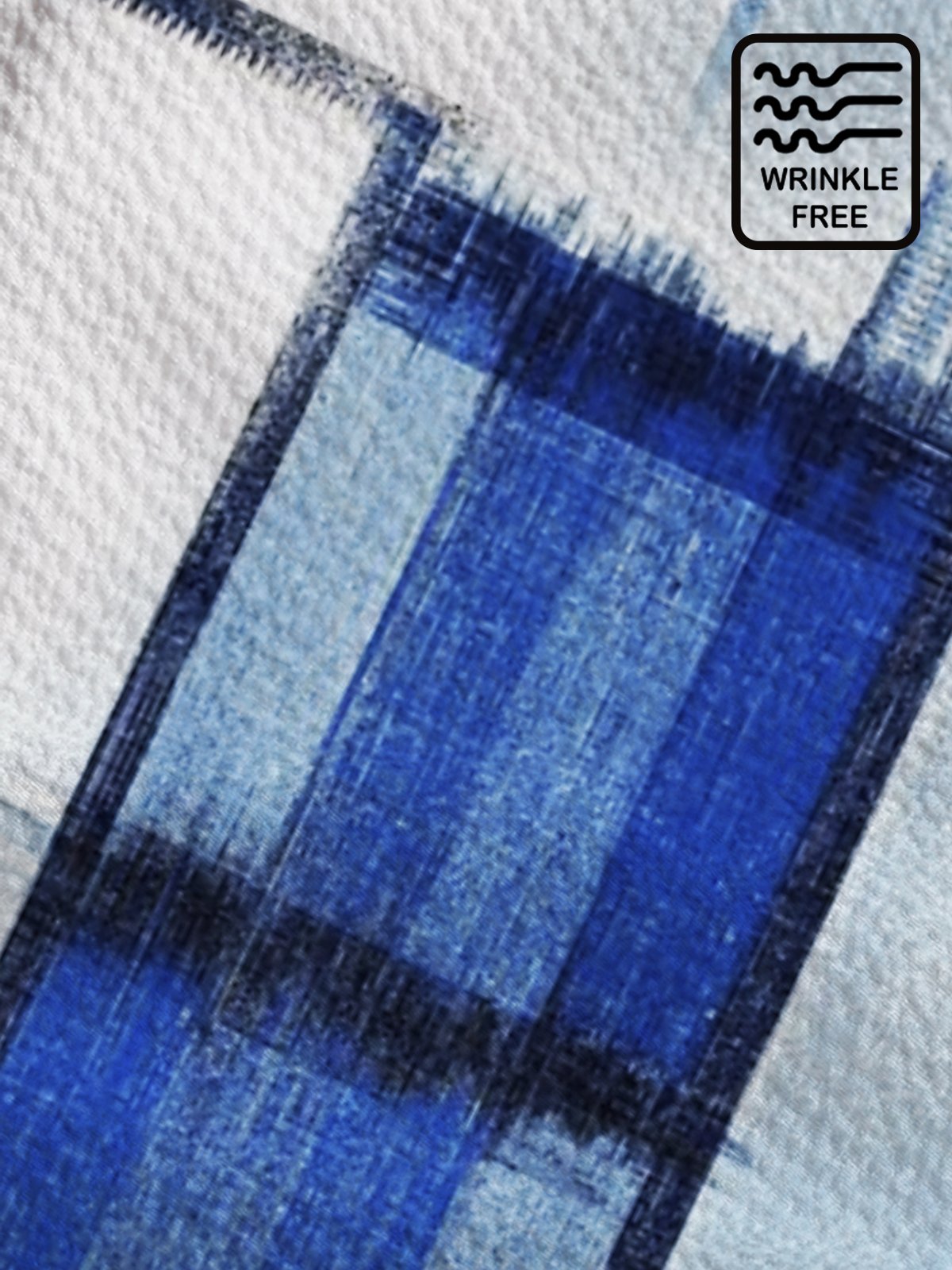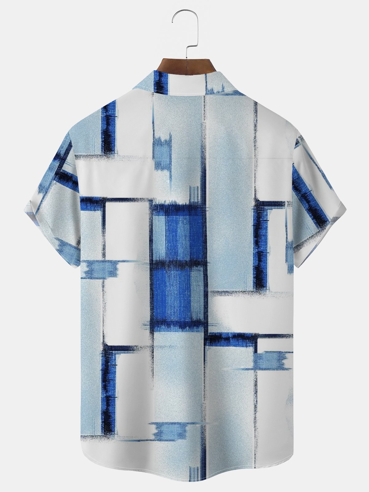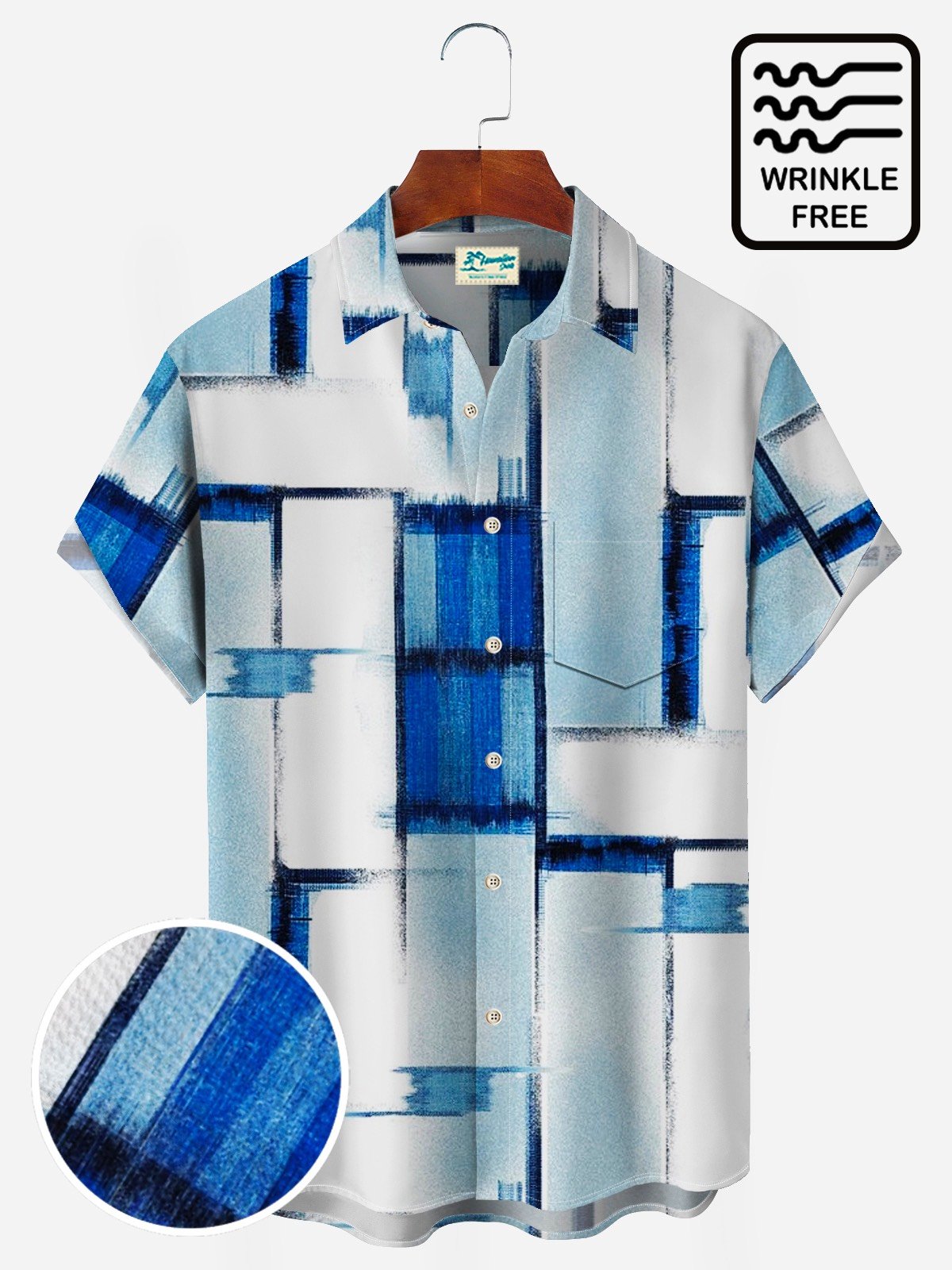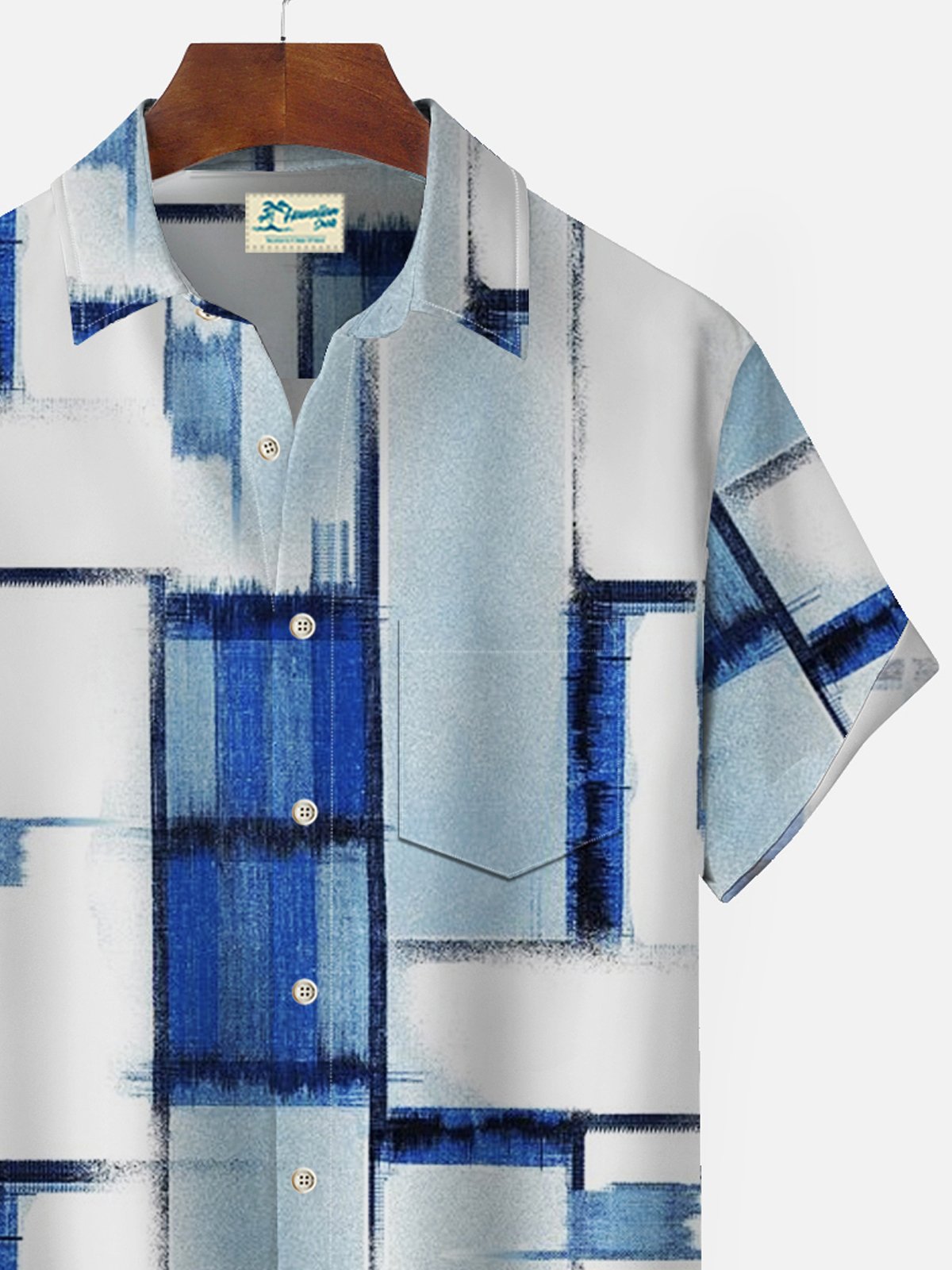 Alohadaddy 50’s Retro Mid-Century Geometric Art Blue Men's Hawaiian Shirts Wrinkle Free Seersucker Easy Care Pocket Camp Shirts