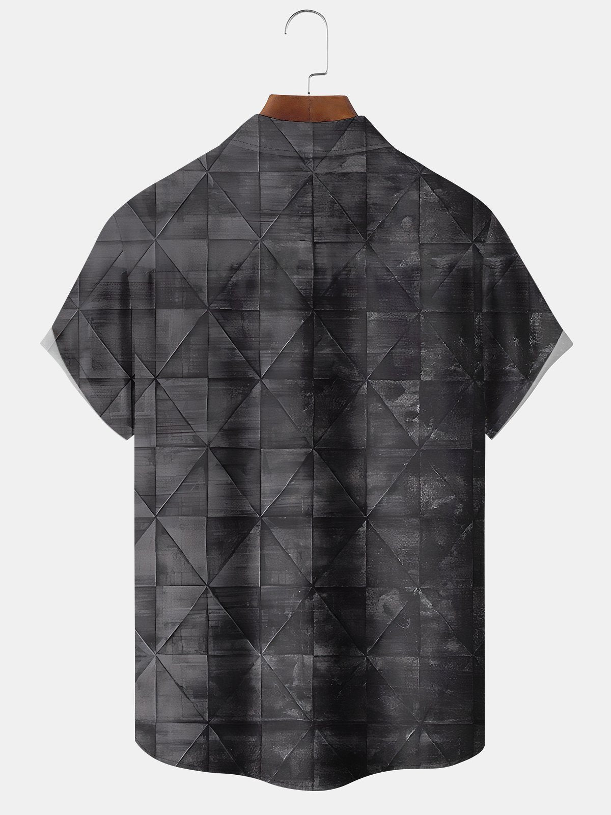 Alohadaddy Casual Collection Daily Geometric Triangle Print Art Button Cardigan Pocket Polyester Stretch Short Sleeve Shirt