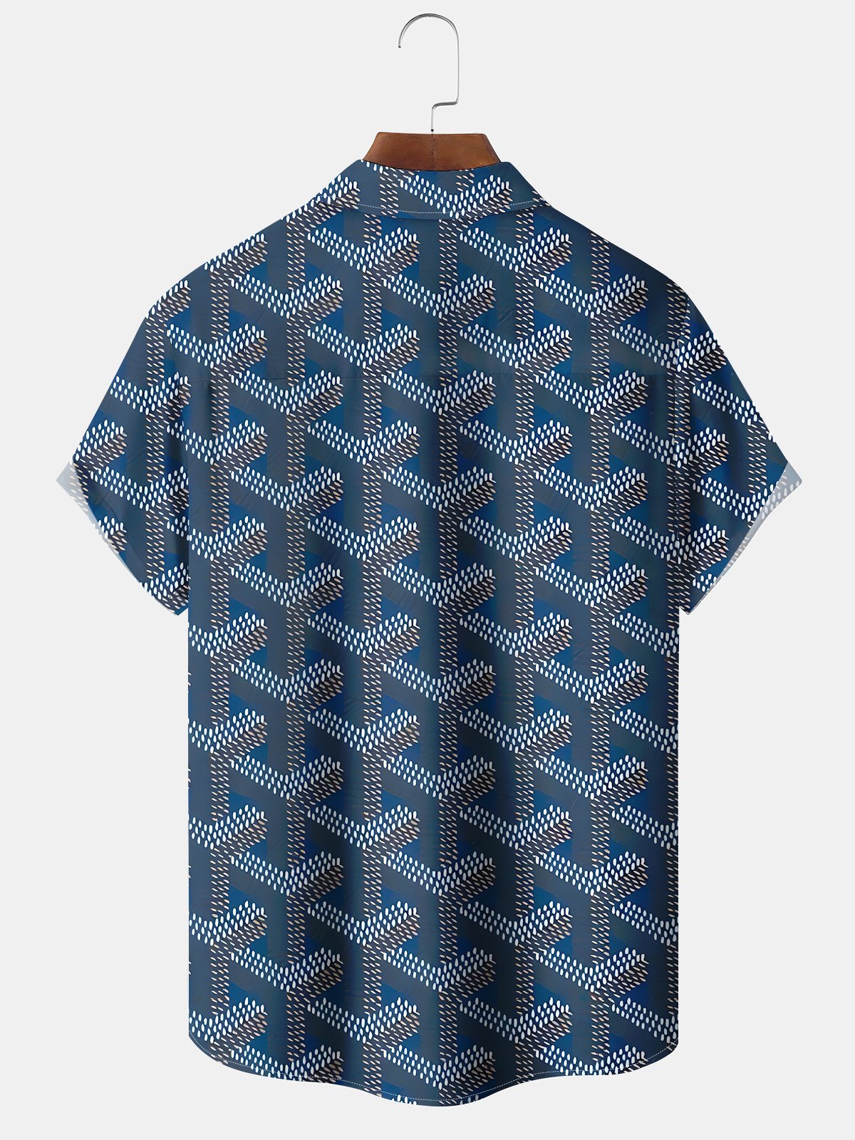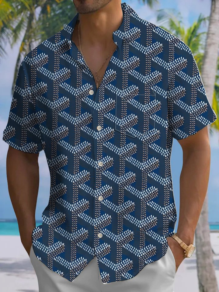 Alohadaddy Casual Collection Geometric Print Art Button Cardigan Pockets Fresh Stretch Polyester Short Sleeve Shirt