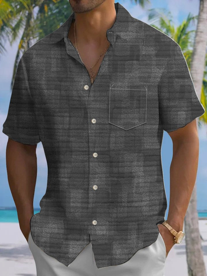 Alohadaddy Casual Everyday Commuter Basic Grey Dark Pattern Print Art Polyester Pocket Cardigan Stretch Long Large Size Short Sleeve Shirt