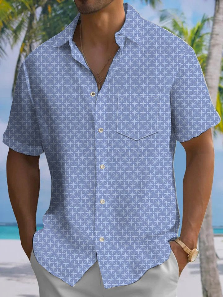 Alohadaddy Casual Everyday Geometric Art Print Polyester Pocket Cardigan Stretch Long Oversized Short Sleeve Shirt