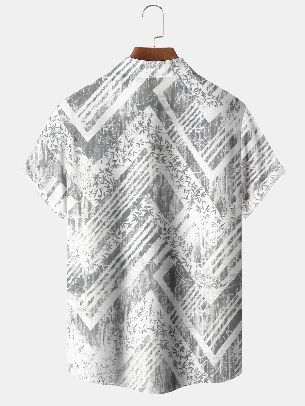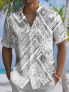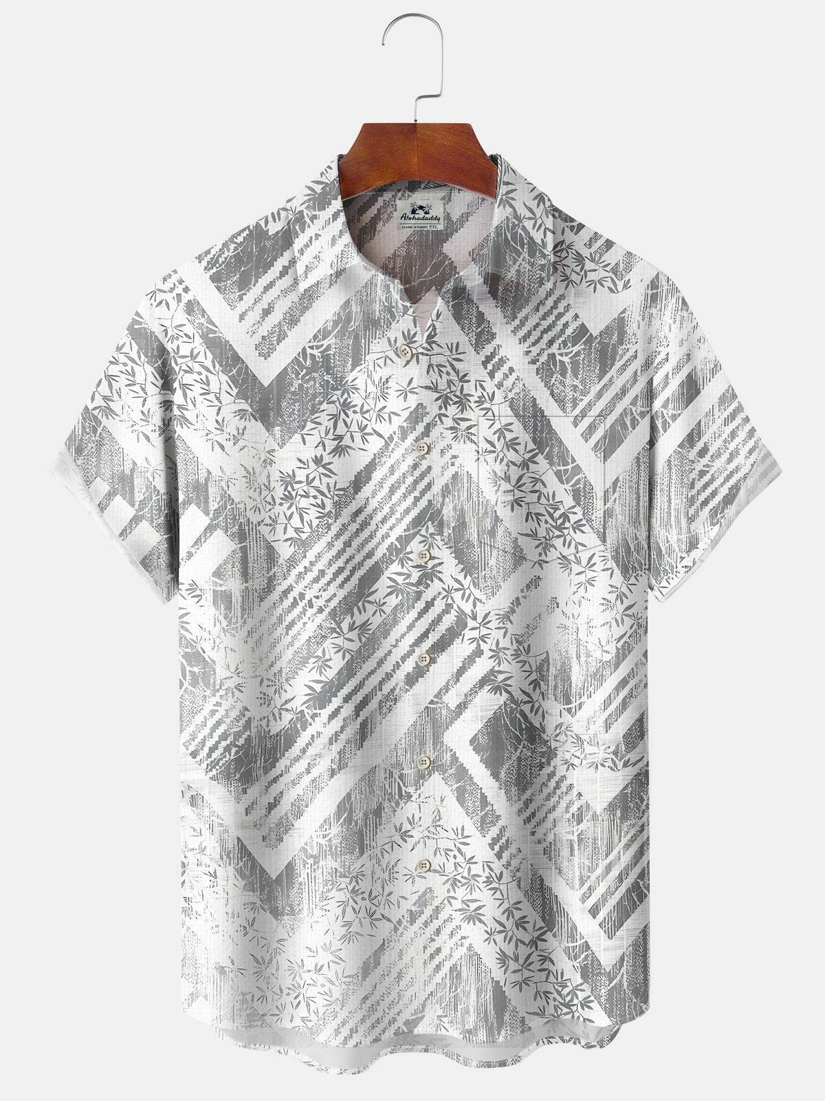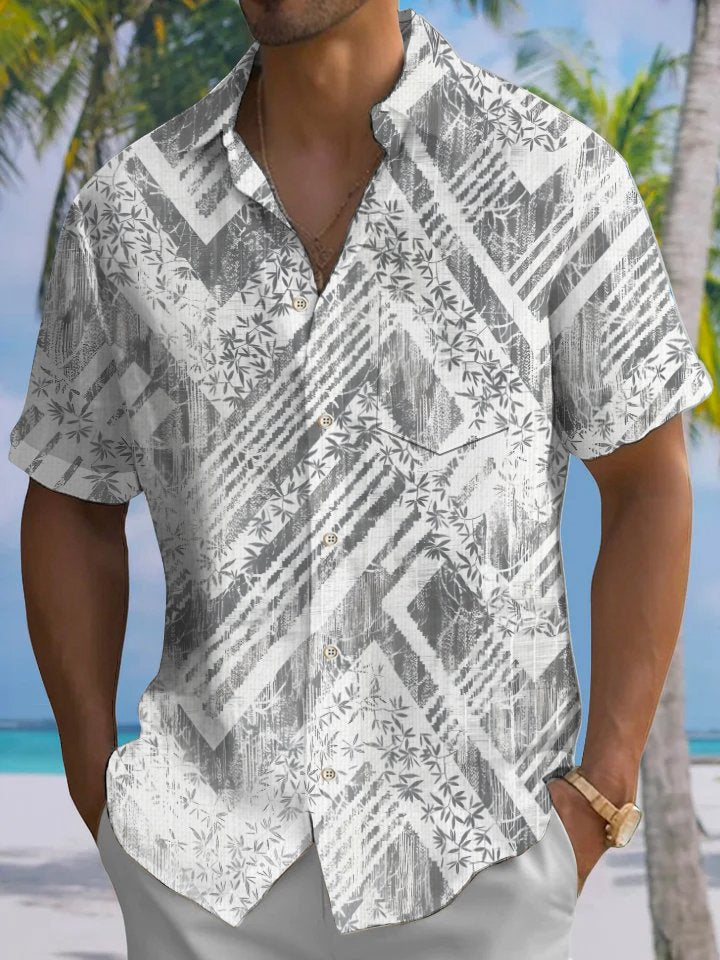 Alohadaddy Casual Everyday Hawaiian Geometric Bamboo Leaf Print Art Polyester Stretch Button Cardigan Pockets Large Size Long Short Sleeve Shirt