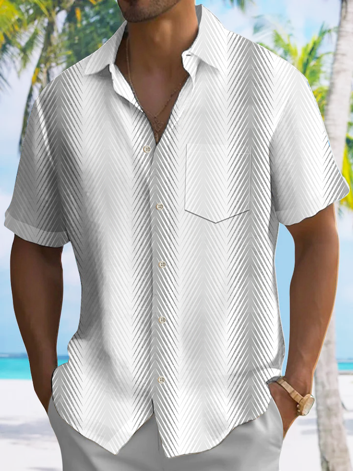 Alohadaddy Geometric Button Pocket Casual 50S Bowling Commuter Short Sleeve Shirt