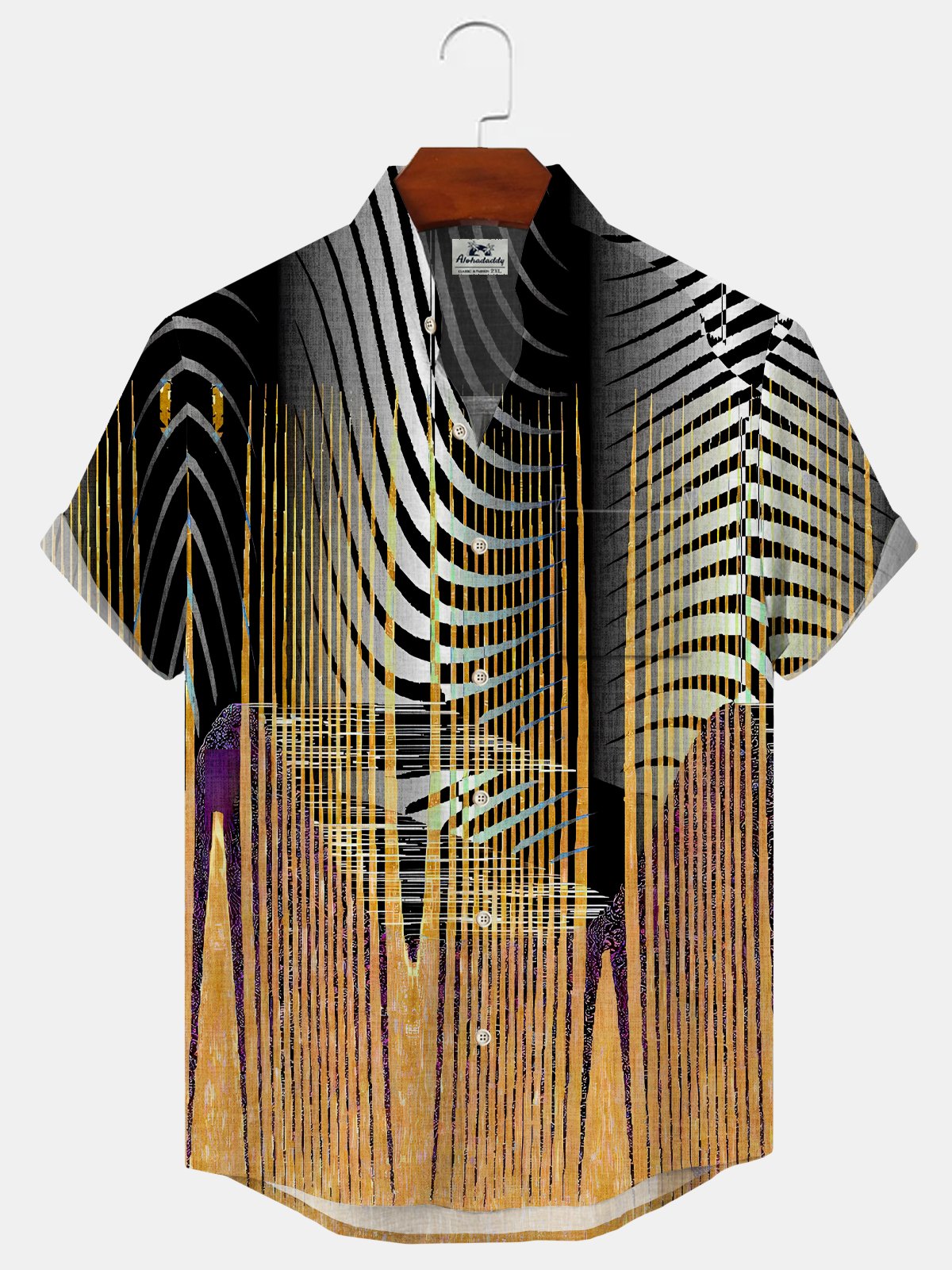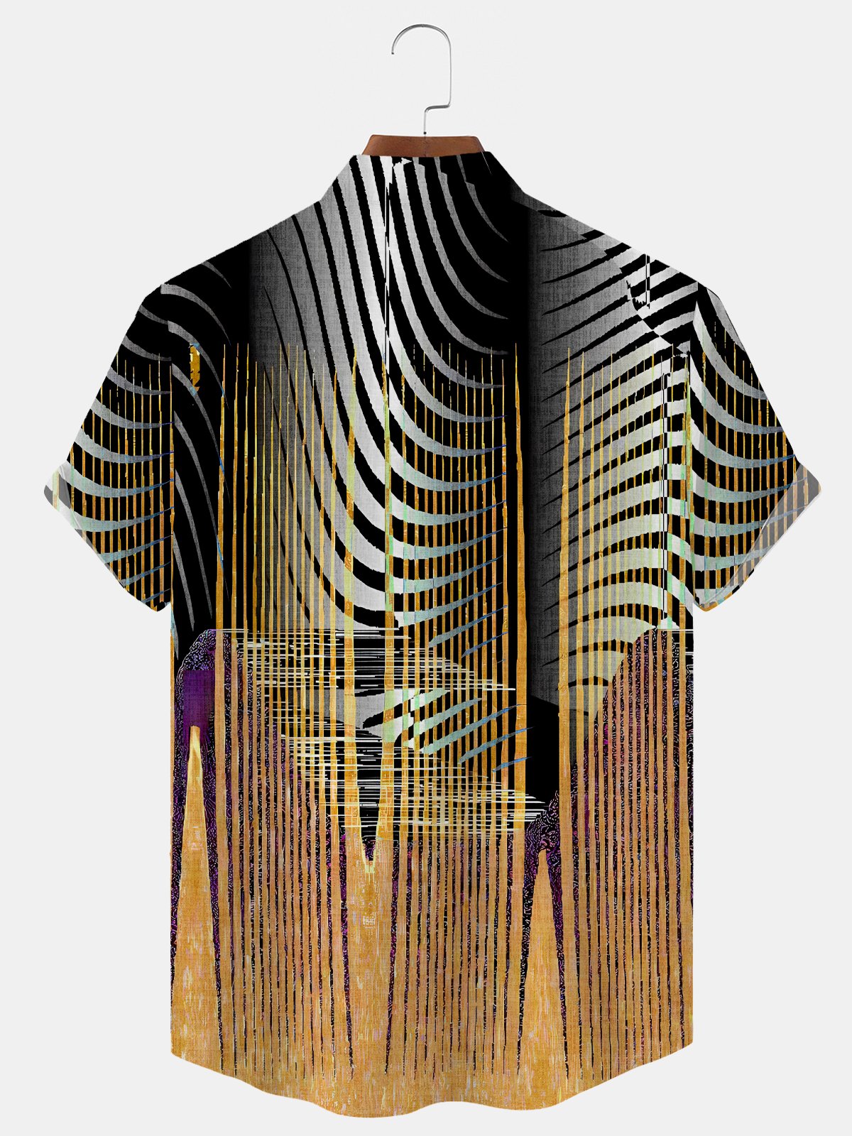 Alohadaddy Geometric Gradient Button Pocket Casual Short Sleeve Stand Collar Shirt