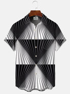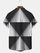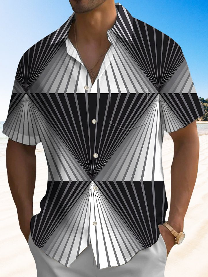 Alohadaddy Geometric Lines Button Pocket Casual Short Sleeve Shirt