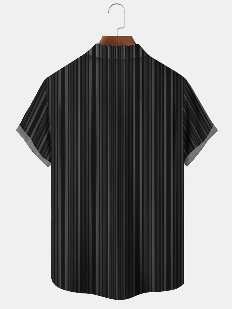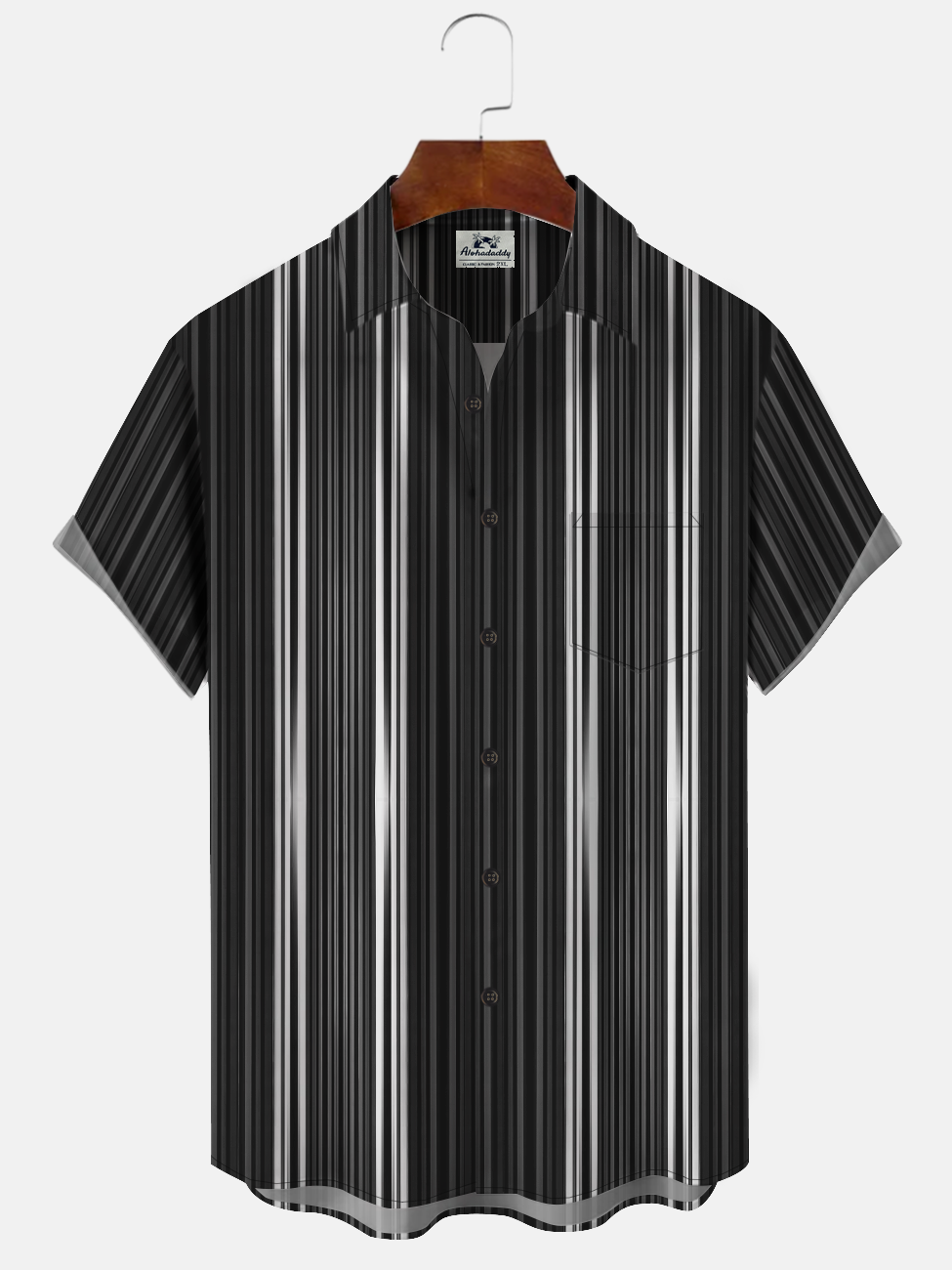Alohadaddy Geometric Lines Buttons Pockets Casual 50S Bowling Commuter Short Sleeve Shirt