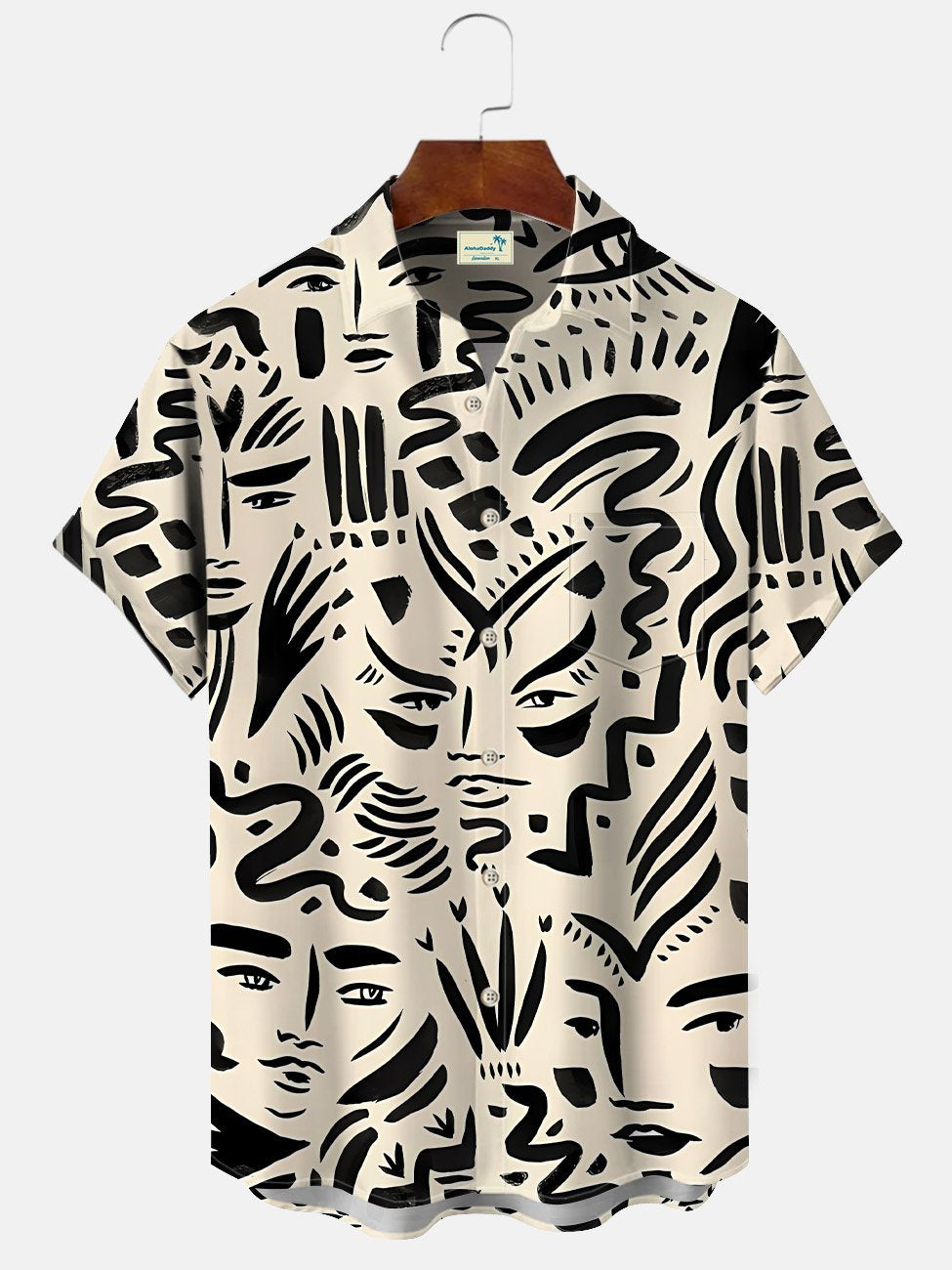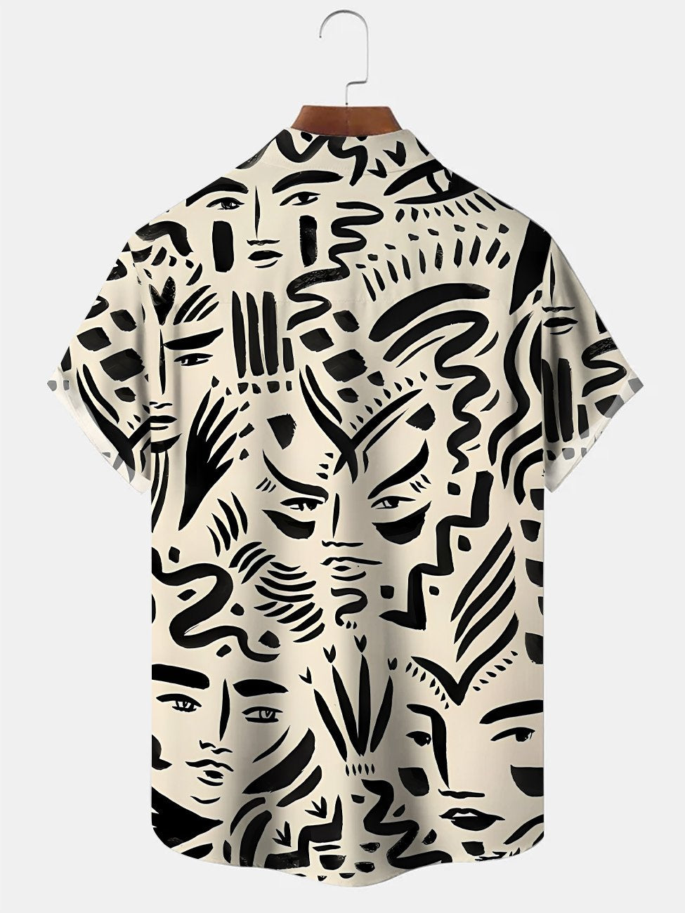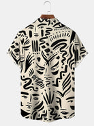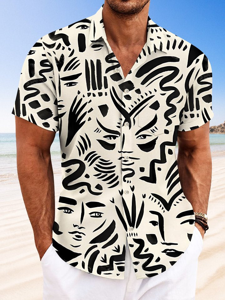 Chemise à manches courtes décontractée à boutons et poches avec visage humain et lignes géométriques Alohadaddy
