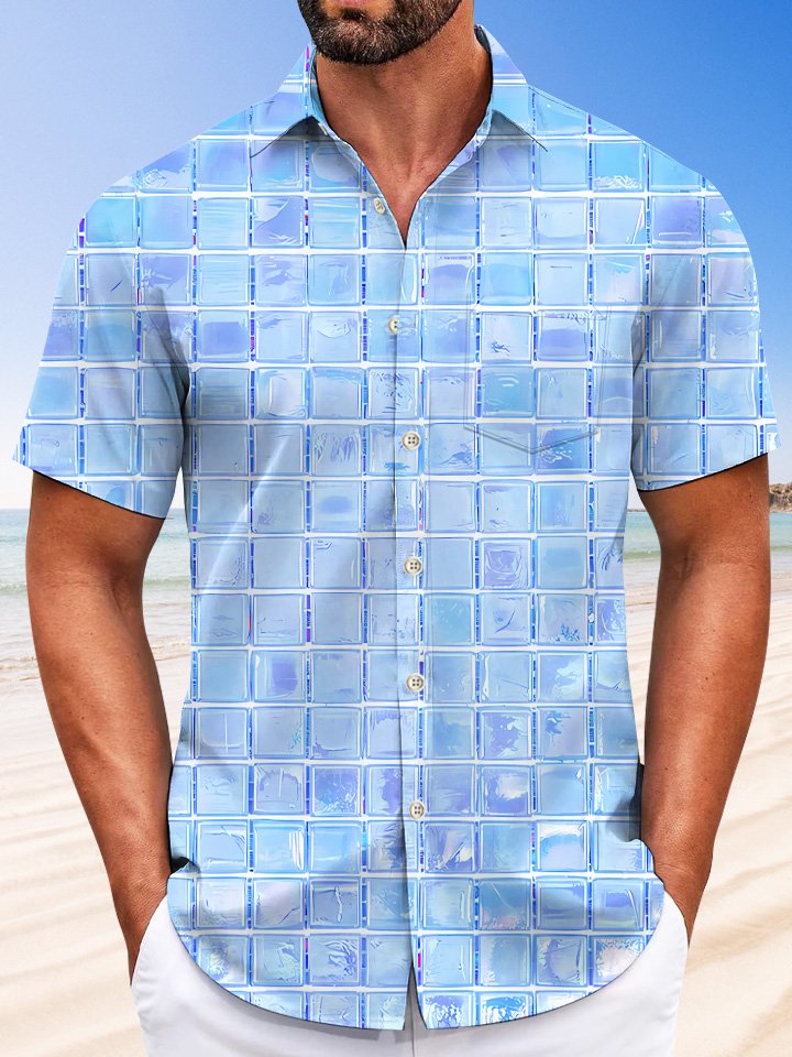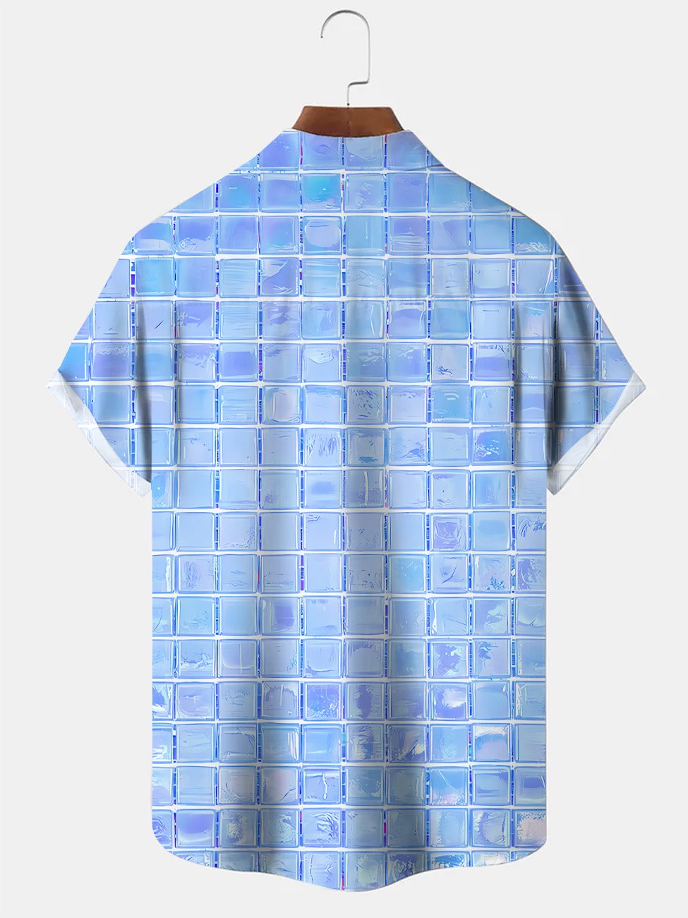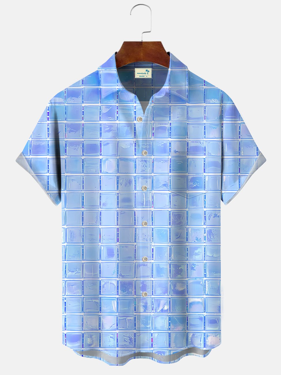 Chemise décontractée à manches courtes avec poche boutonnée et effet miroir géométrique Alohadaddy