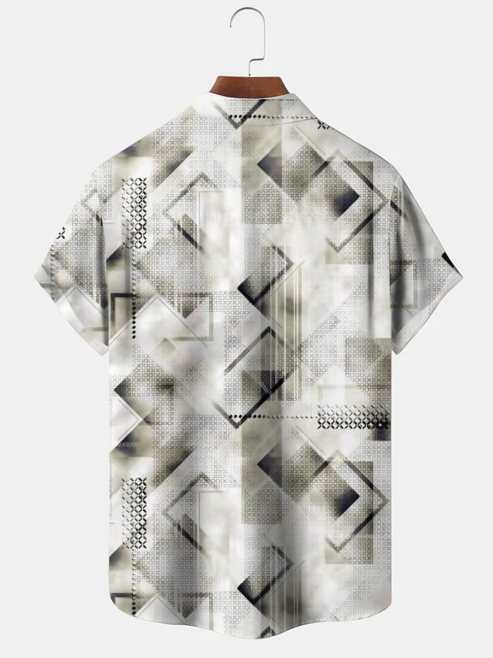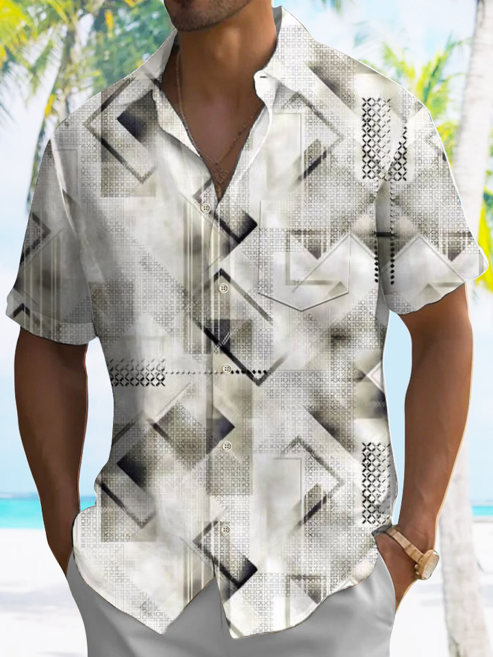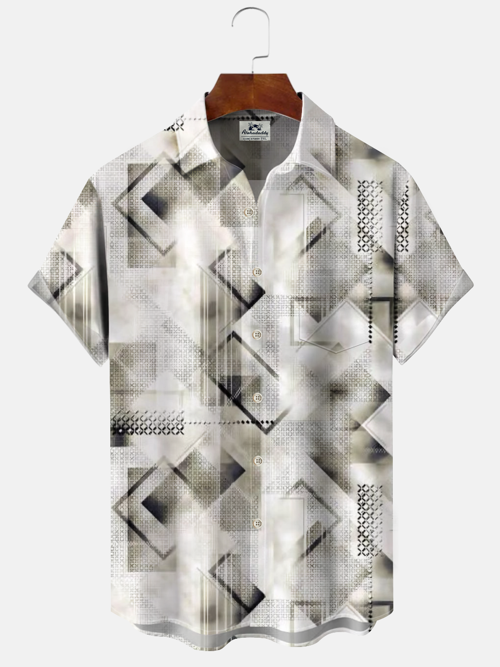Alohadaddy Geometric Pattern Button Pocket Casual Short Sleeve Shirt