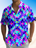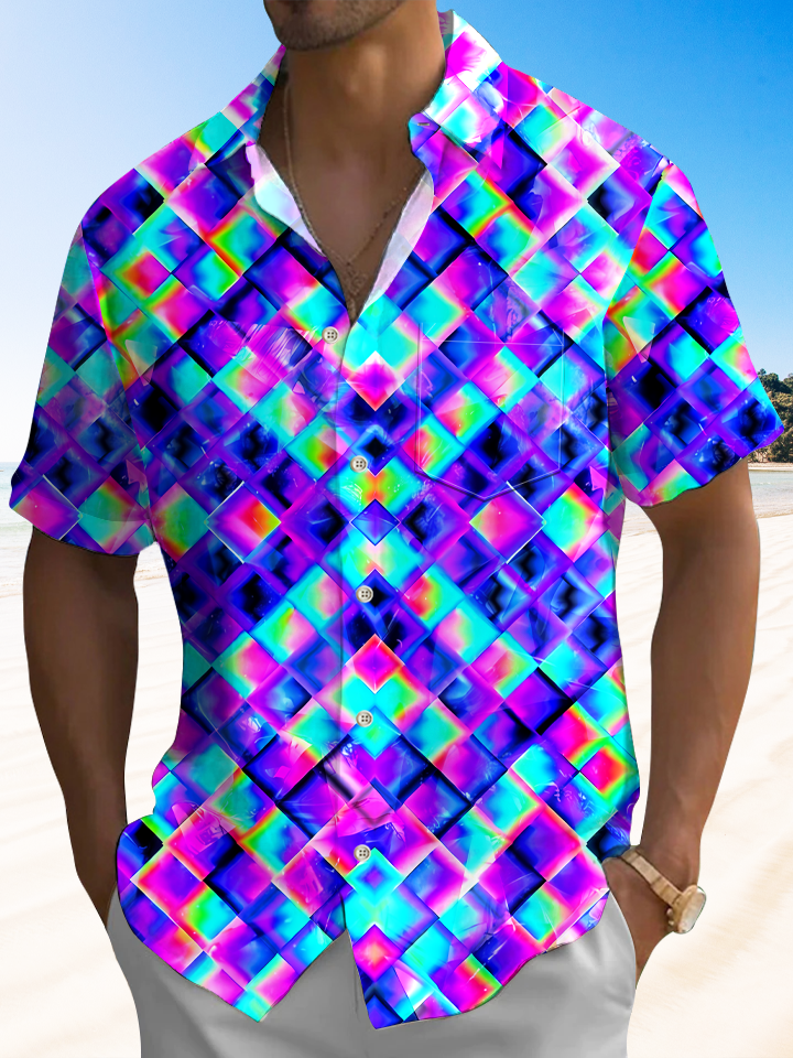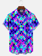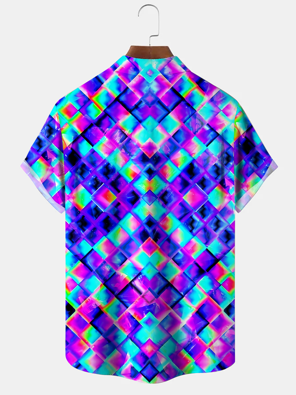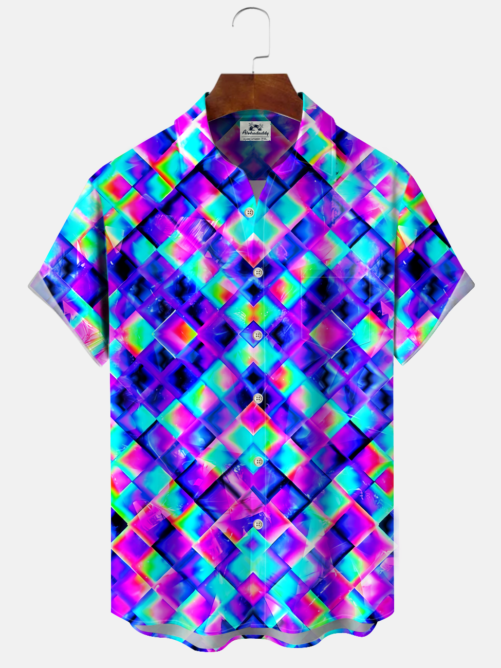 Alohadaddy Geometric Pattern Fluorescent Geometric Button Pocket Casual Short Sleeve Shirt