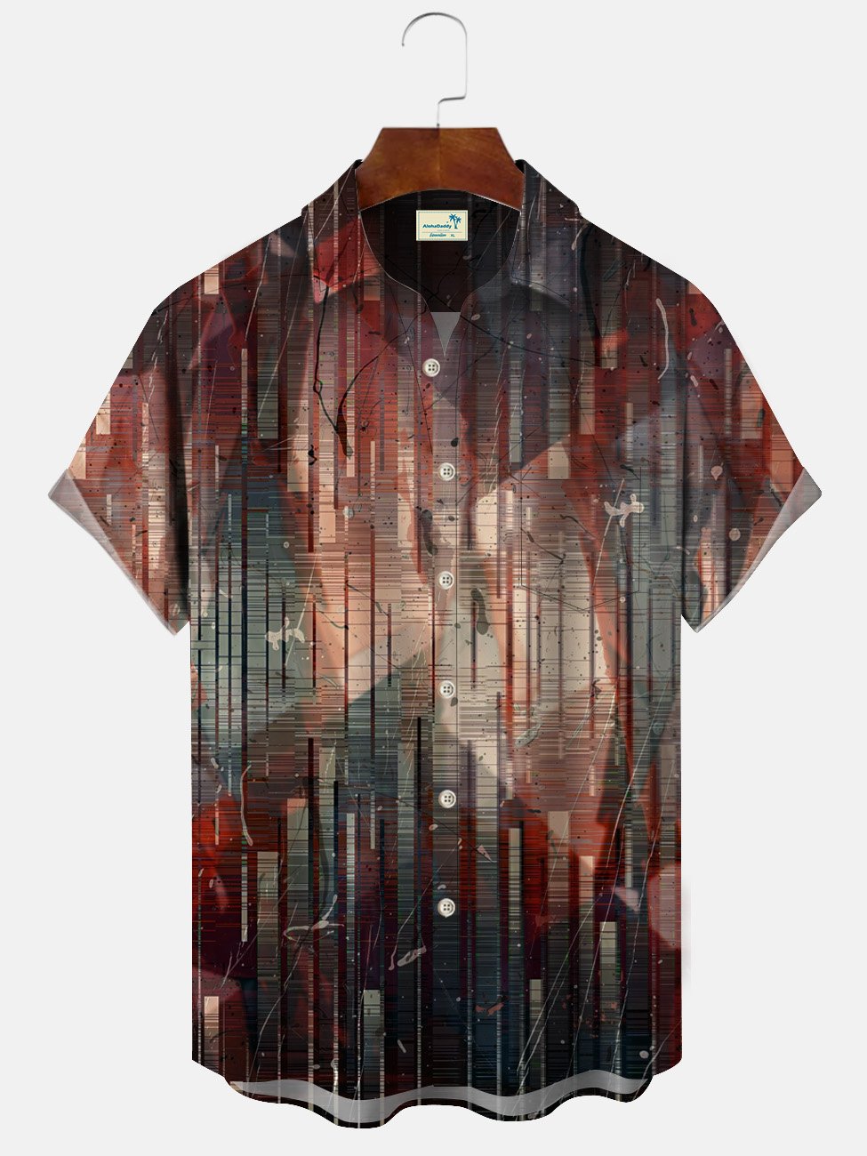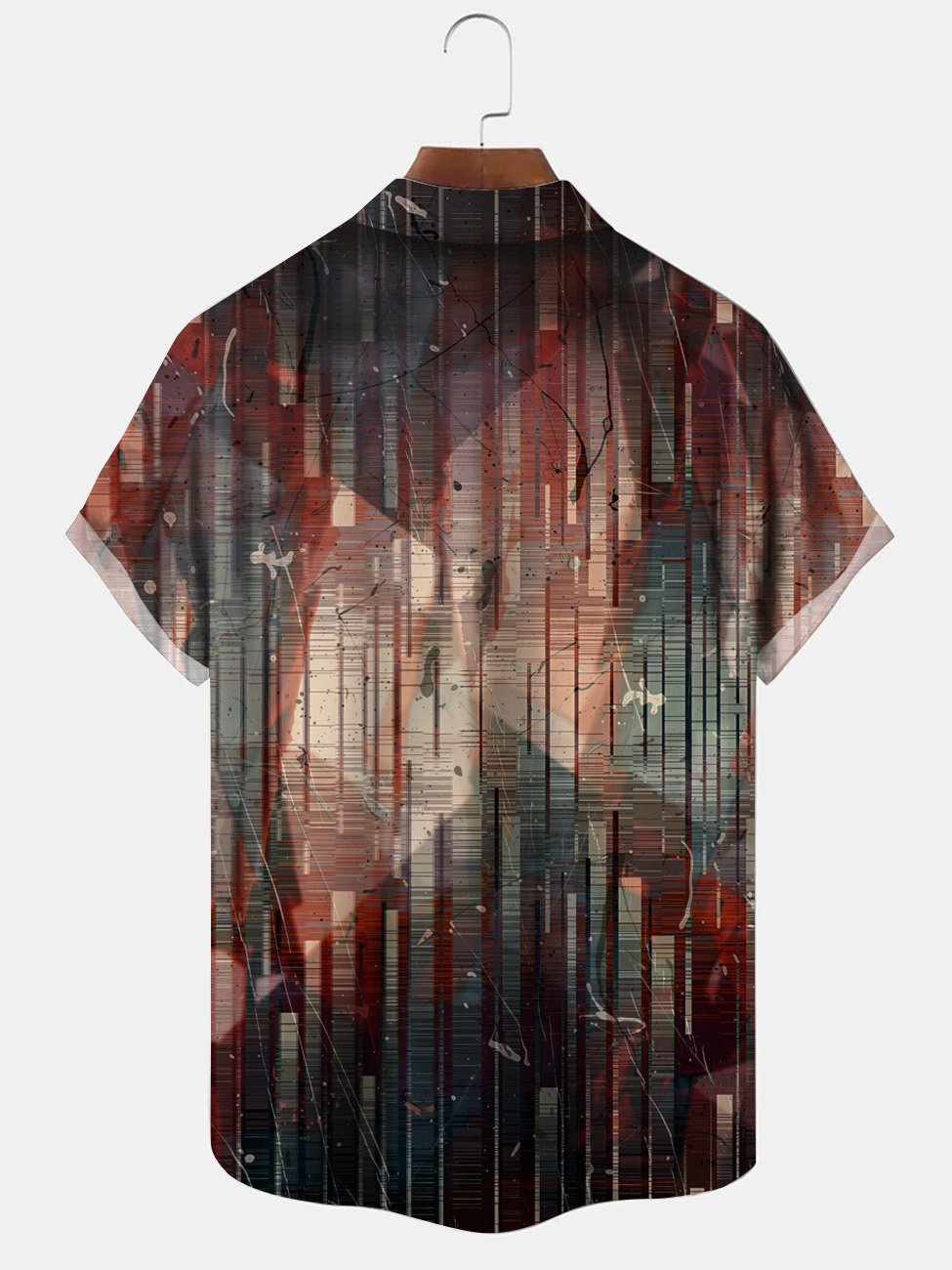 Chemise à manches courtes décontractée à poches boutonnées pour hommes avec motif géométrique et peinture à l'huile Alohadaddy