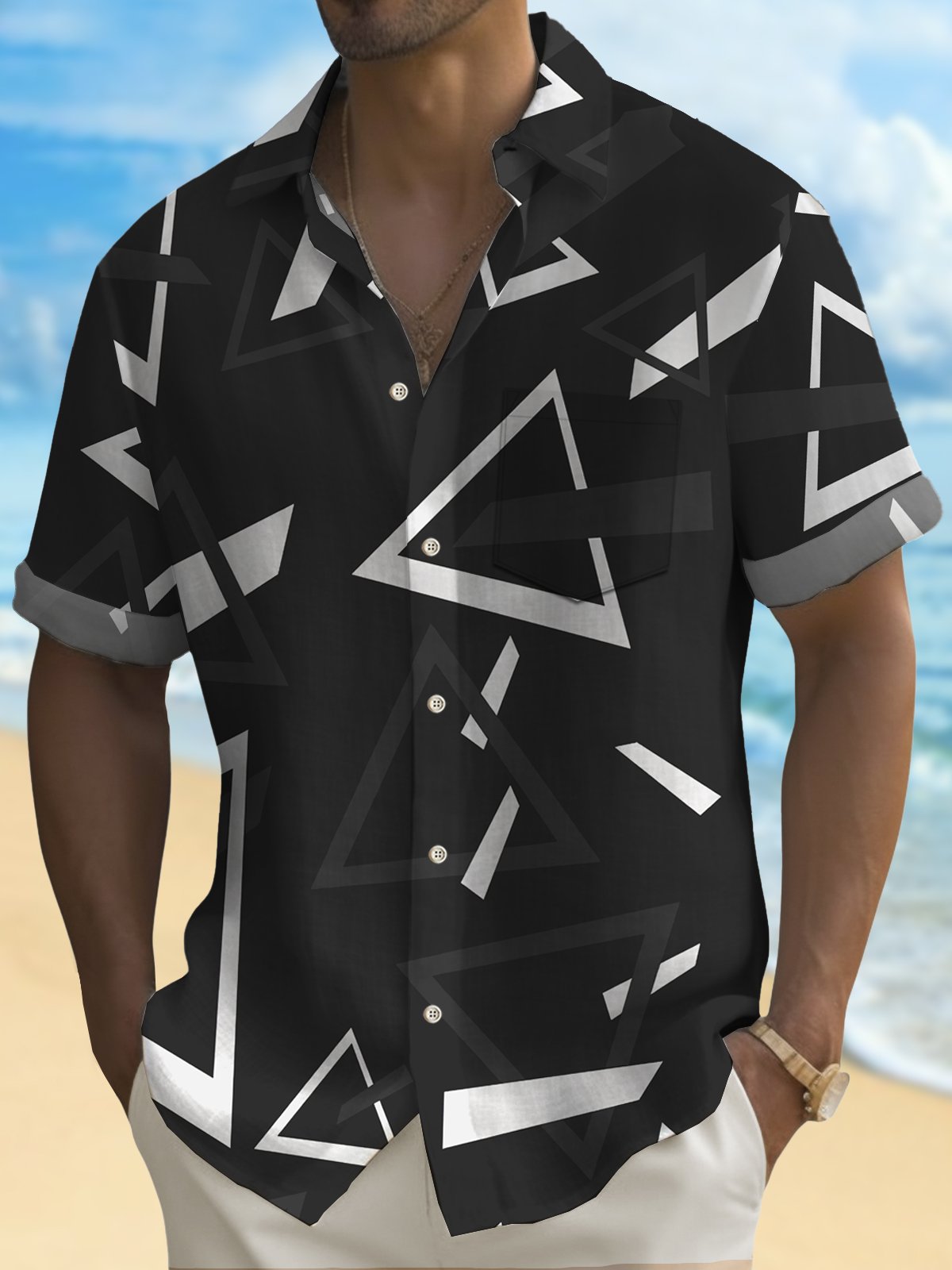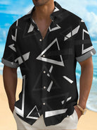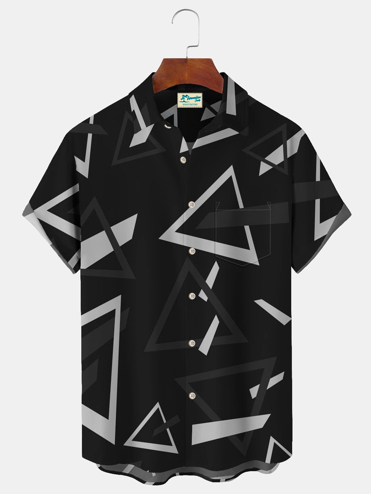 Alohadaddy Geometric Triangle Print Men's Button Pocket Short Sleeve Shirt