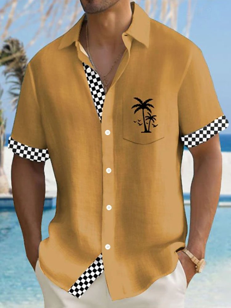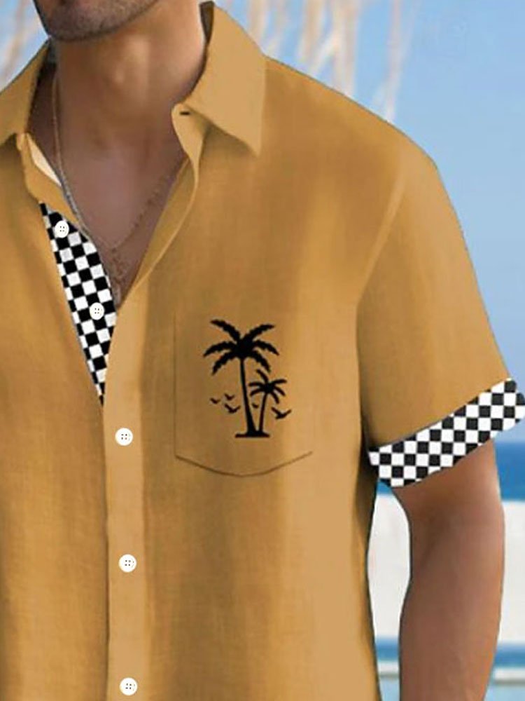 Chemise hawaïenne à manches courtes et poches boutonnées pour homme avec imprimé 3D de cocotiers noirs et blancs d'Alohadaddy
