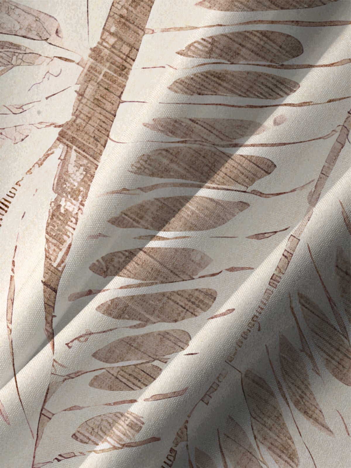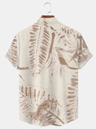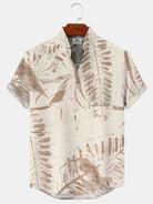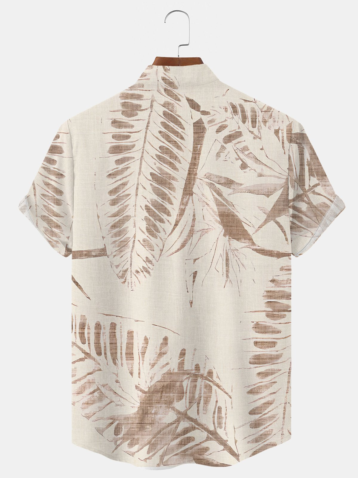 Alohadaddy Plant Leaves Buttons Pockets Casual Short Sleeve Stand Collar Shirt