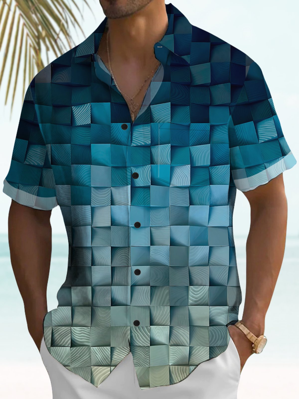 Alohadaddy Retro 3D Art Gradient Geometric Pocket Hawaiian Shirt