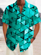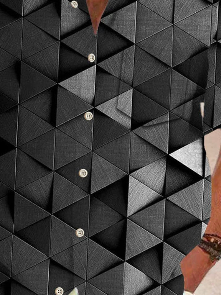 Chemise à manches courtes et poches boutonnées pour homme avec imprimé géométrique rétro 3D Alohadaddy