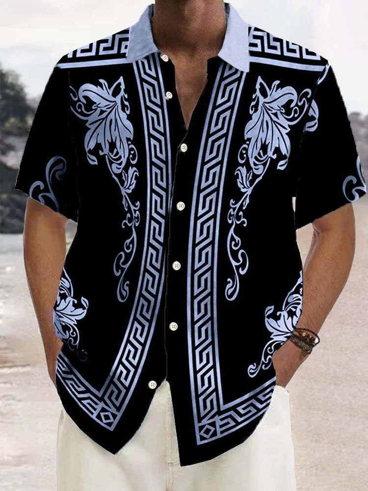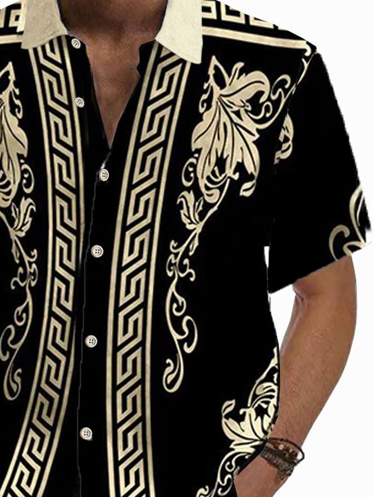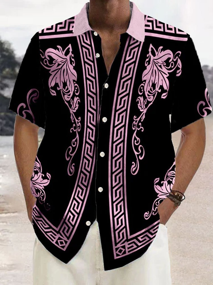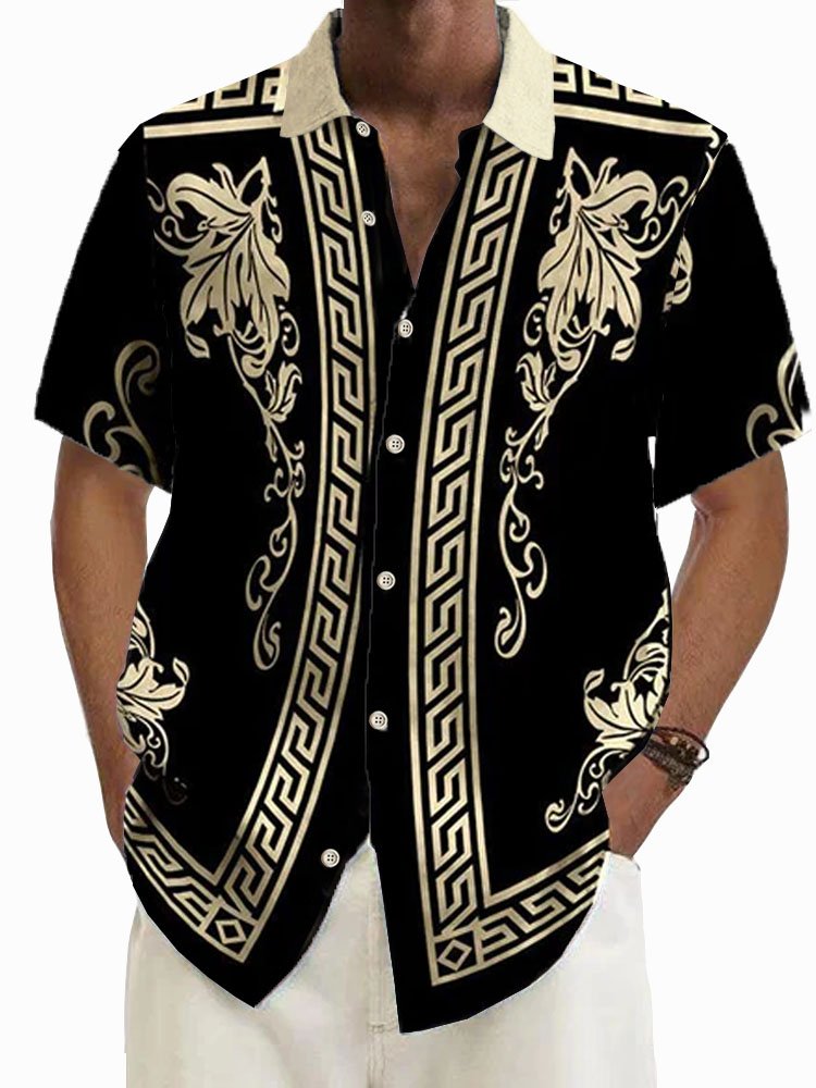 Chemise à manches courtes et poches boutonnées pour homme à imprimé floral géométrique rétro Alohadaddy