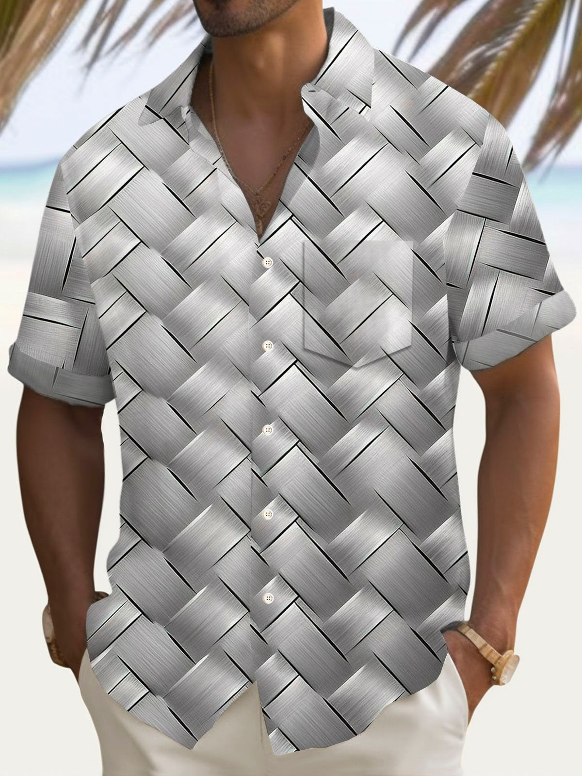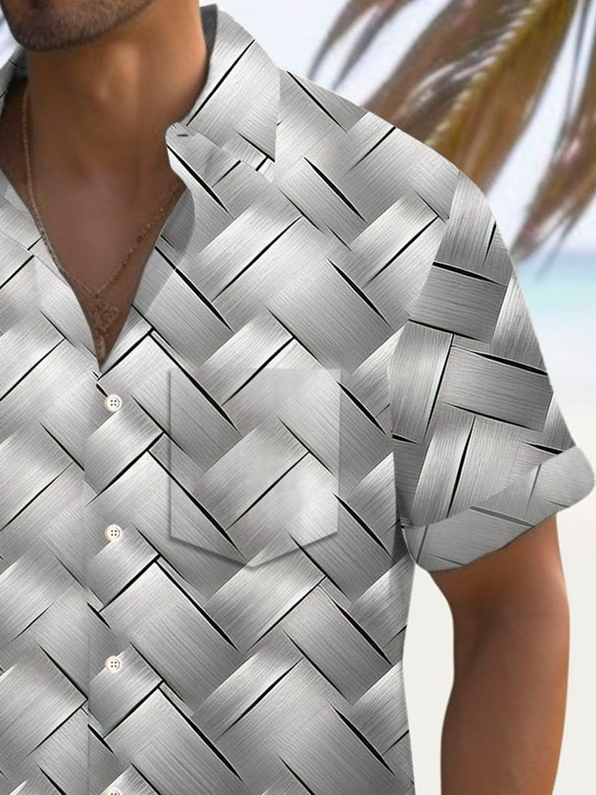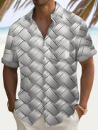 Alohadaddy Retro Geometric Gradient 3D Print Men's Button Pocket Short Sleeve Shirt