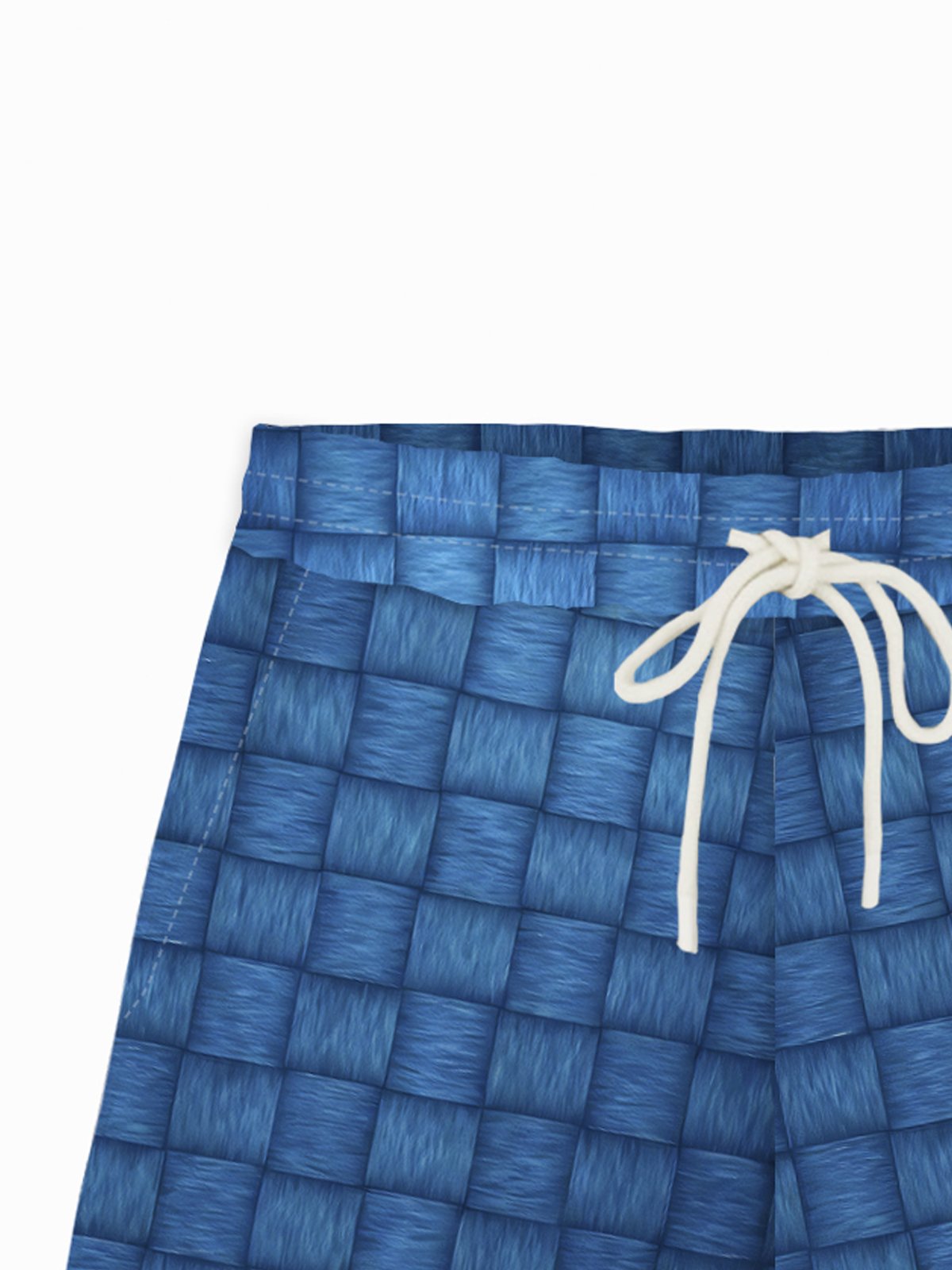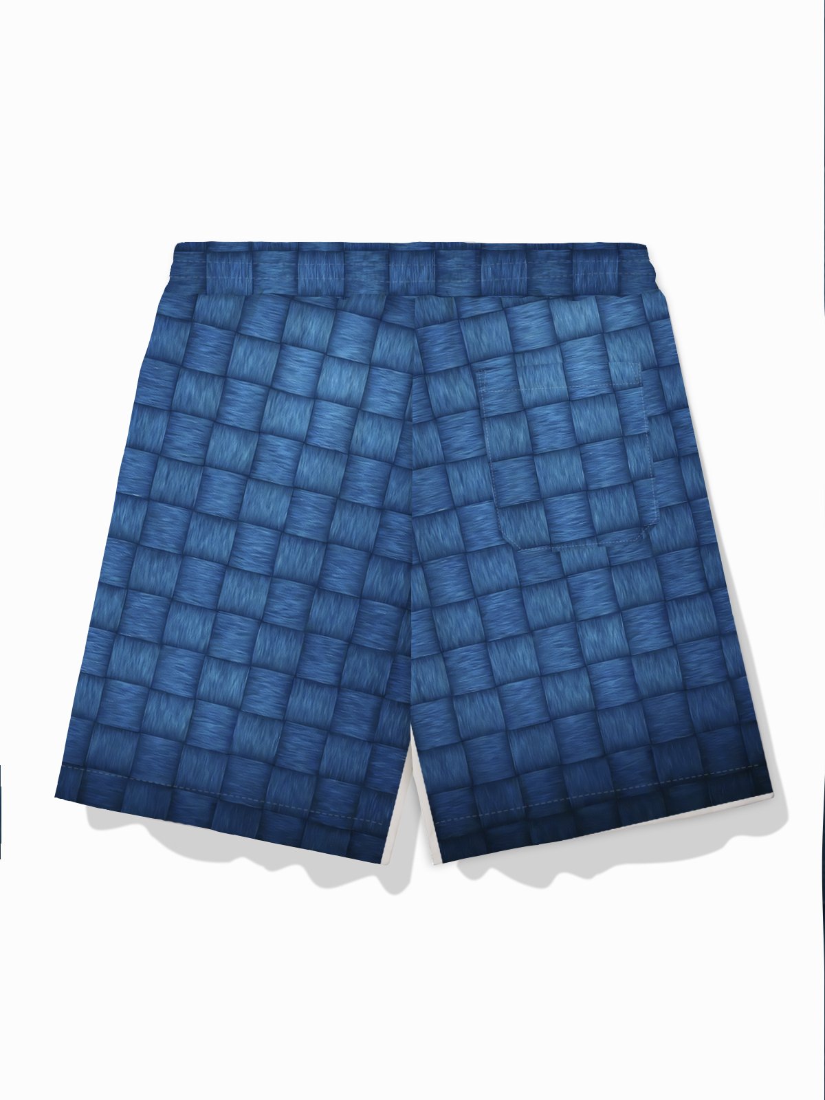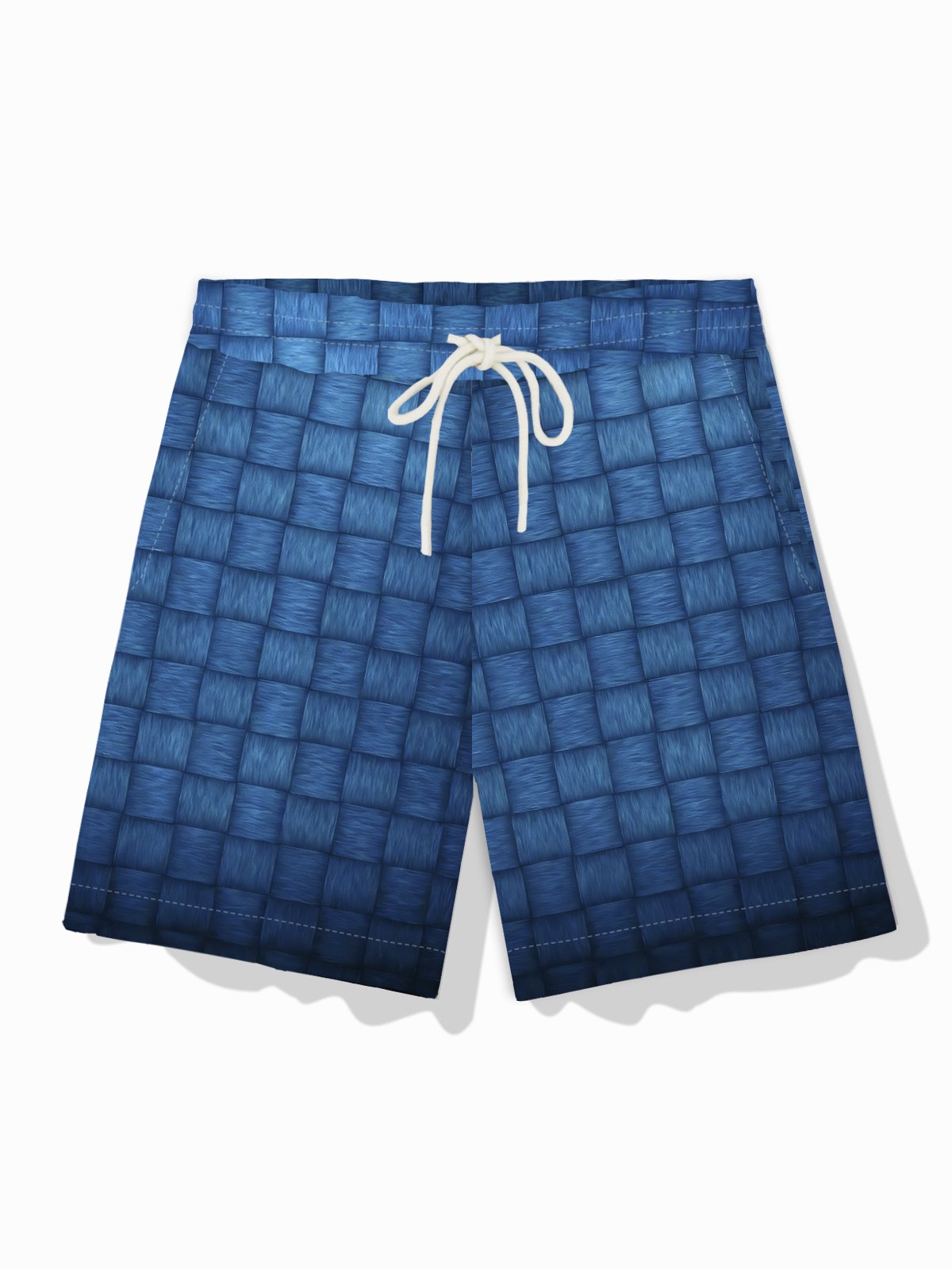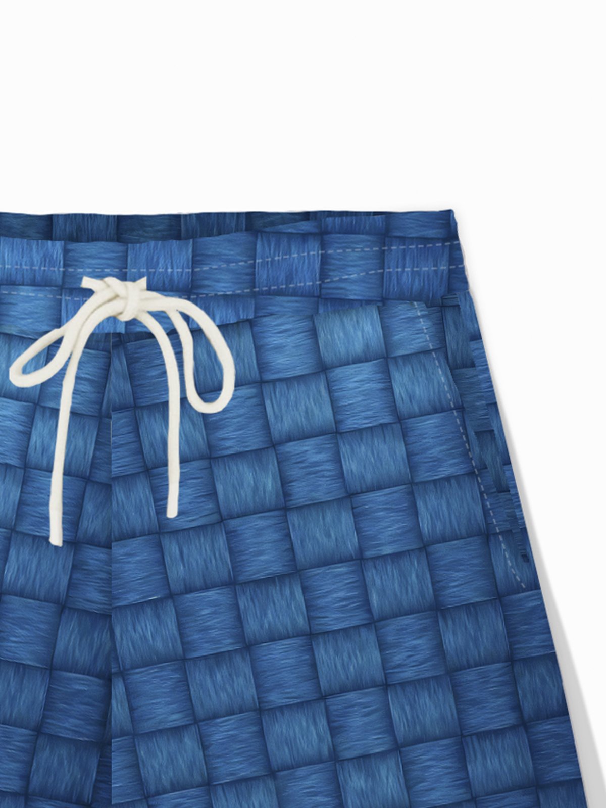 Short de bain à imprimé géométrique rétro à carreaux Alohadaddy pour homme avec cordon de serrage et poche élastique