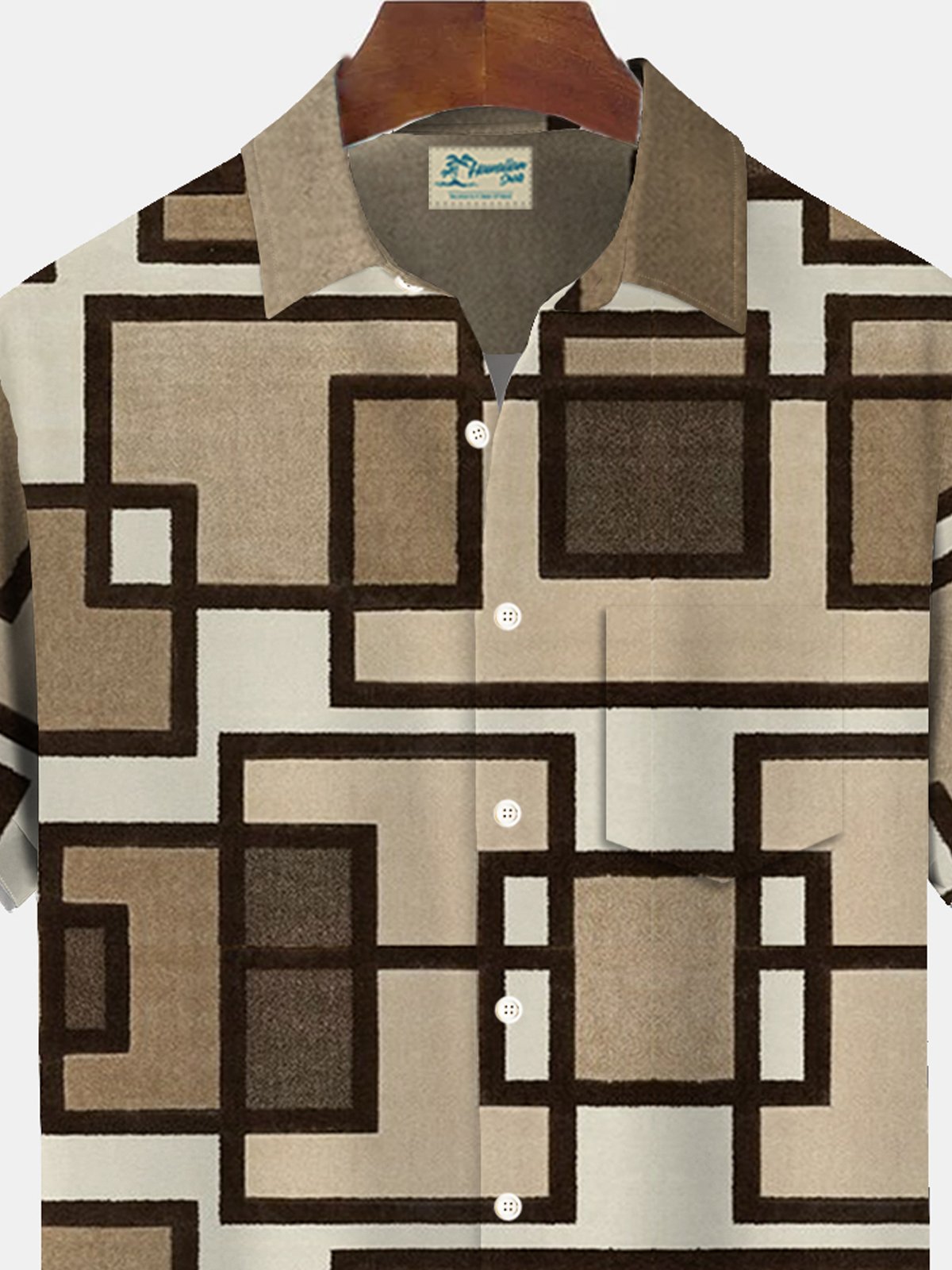 Alohadaddy Retro Geometric Texture Carpet 3D Print Men's Button Pocket Short Sleeve Shirt Big & Tall