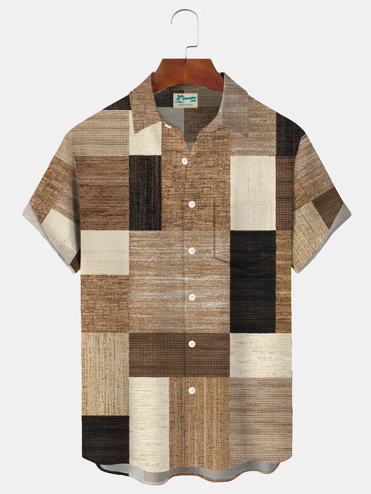 Alohadaddy Retro Geometric Texture Carpet 3D Print Men's Button Pocket Short Sleeve Shirt Big & Tall