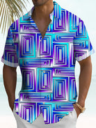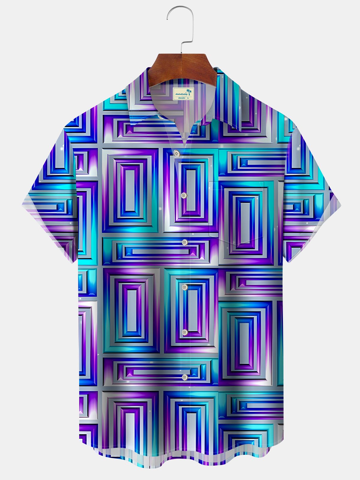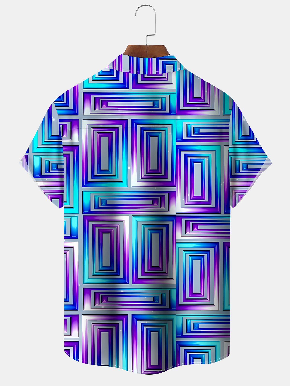 Alohadaddy Retro Gradient Geometric 3D Digital Print Men's Button Pocket Short Sleeve Shirt