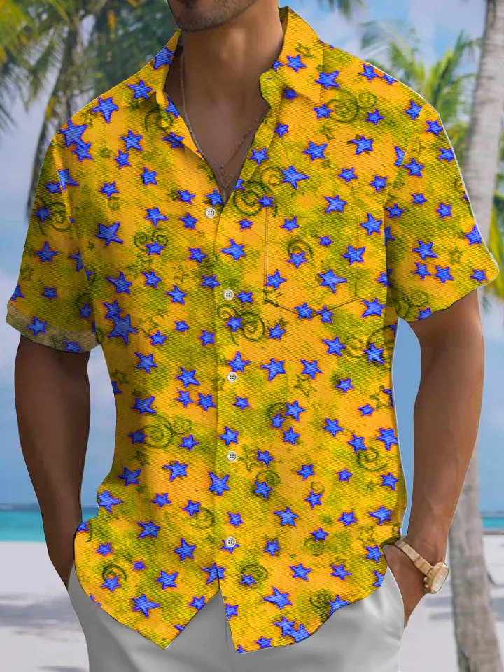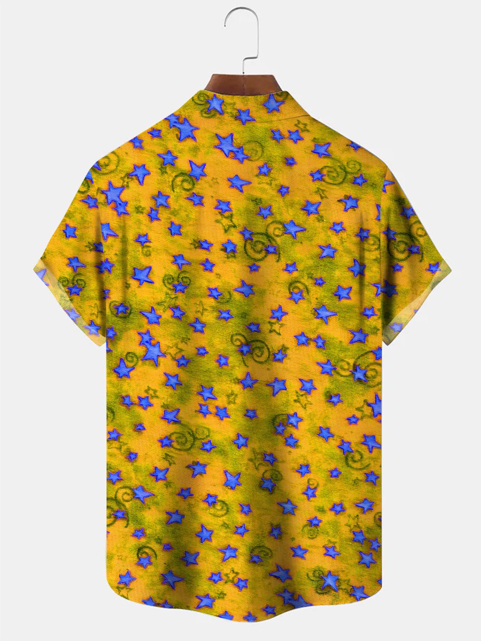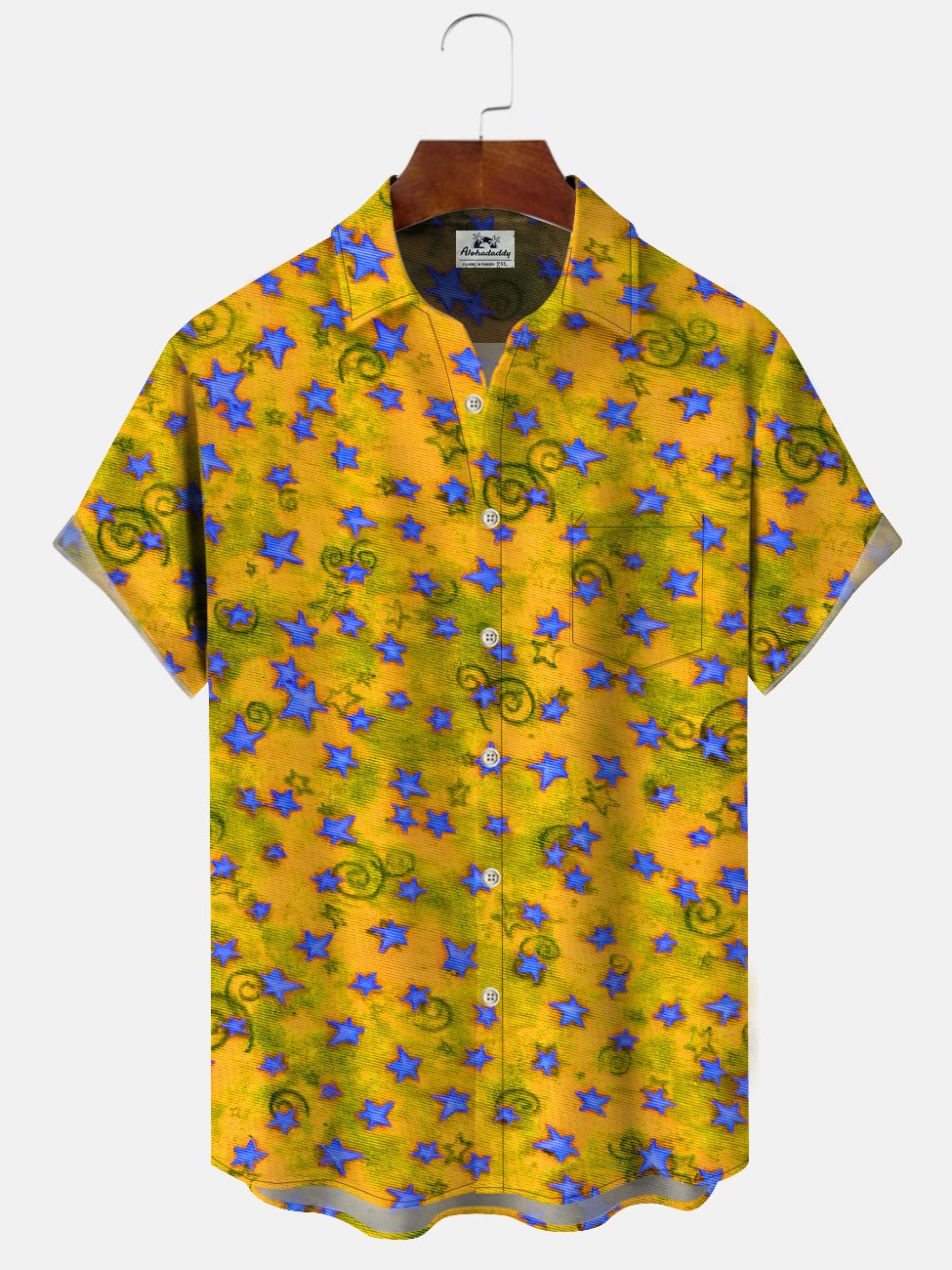 Alohadaddy Star Geometric Pattern Button Pocket Casual Short Sleeve Shirt