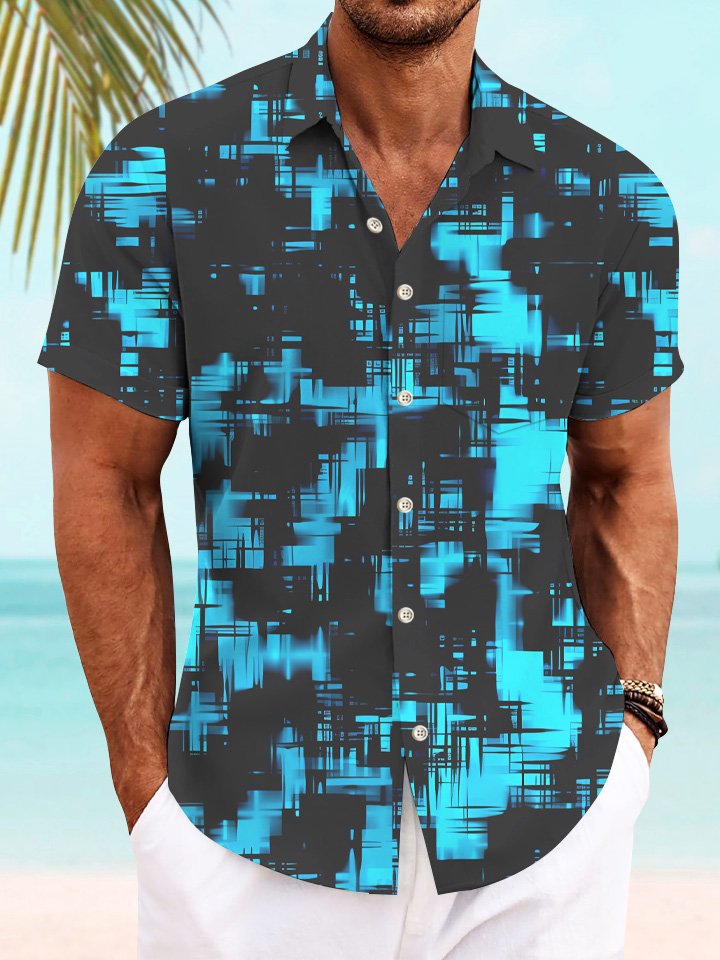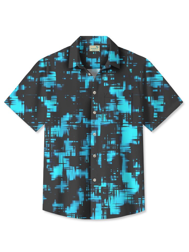 Alohadaddy Summer Ethnic Pattern Contrast Color Pocket Button Casual Vacation Men's Shirt